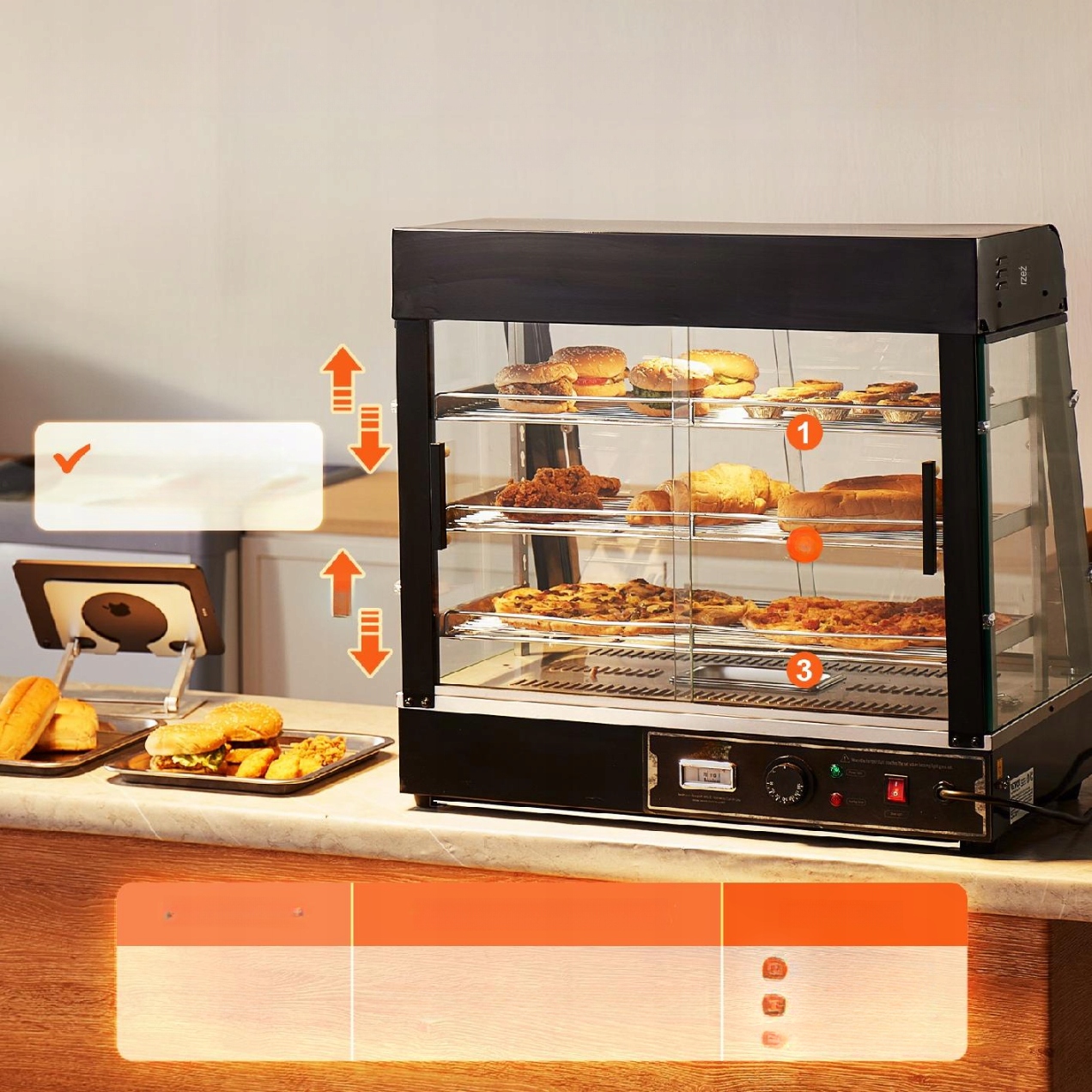 - ⭐ Ідеально підходить для збереження тепла та демонстрації піци, гамбургерів, картоплі фрі та іншої їжі швидкого приготування в ресторанах і барах.