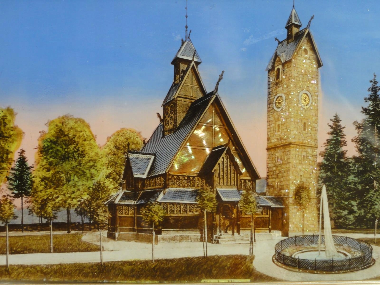 *Церква Ван - барвиста фотографія, розписана та інкрустована перламутром - довоєнна, оригінальна дрібничка,