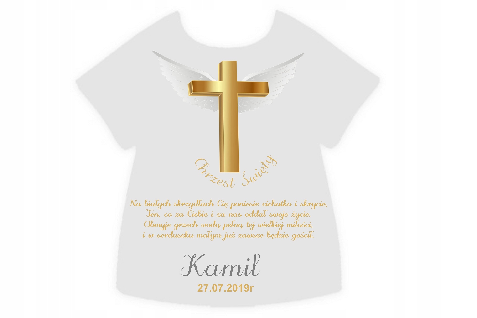 Robe – ніжна біла мантія з гарним візерунком. Матеріал халата 75% сатин 25% поліестер. Ідеально підходить для друку. Є різні дизайни та форми на вибір. На халаті він може нанести обраний мотив, присвяту, імена дитини, дату. Все згідно з вашими інструкціями та побажаннями.