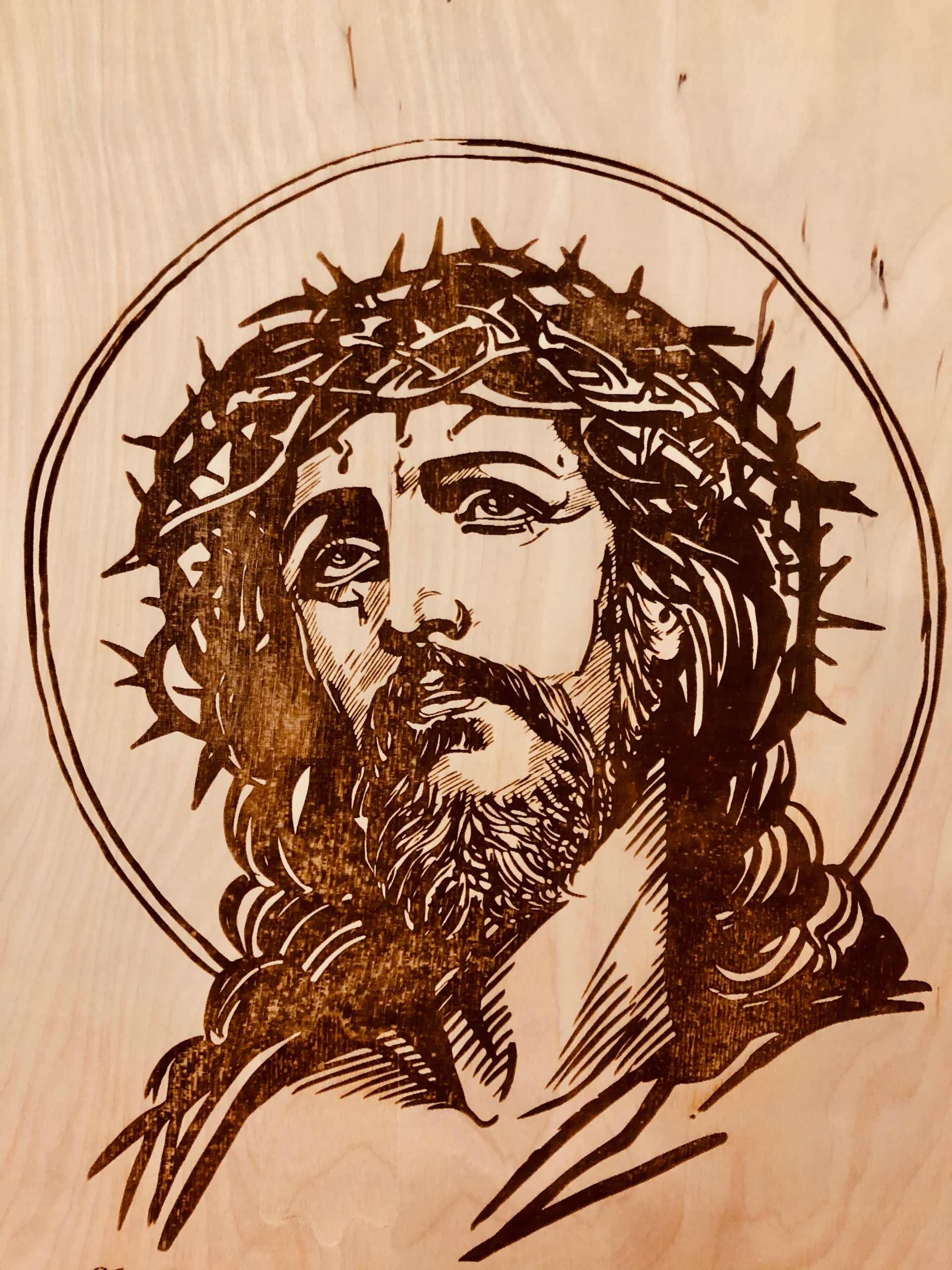 Унікальний образ Ісуса Христа, вигравіруваний лазером на фанері та виготовлений у нашій студії гравіювання GRAWERNIADDZ.