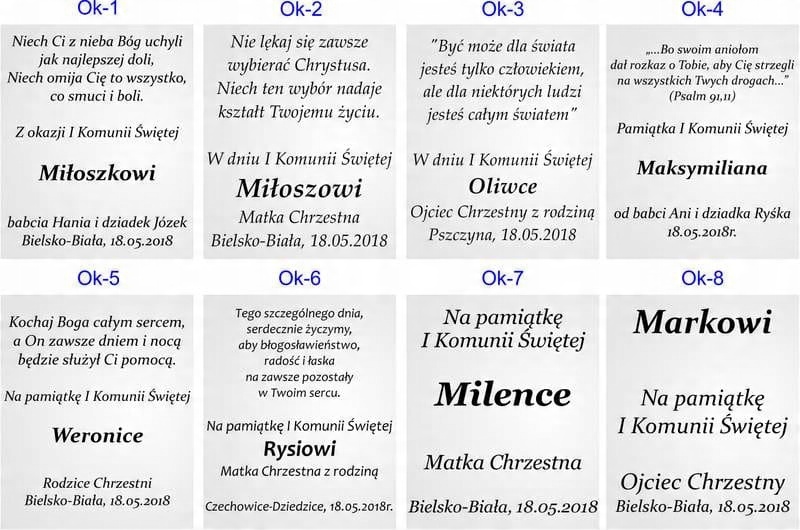 Тексти освячень до Святого Хрещення та Першого Причастя