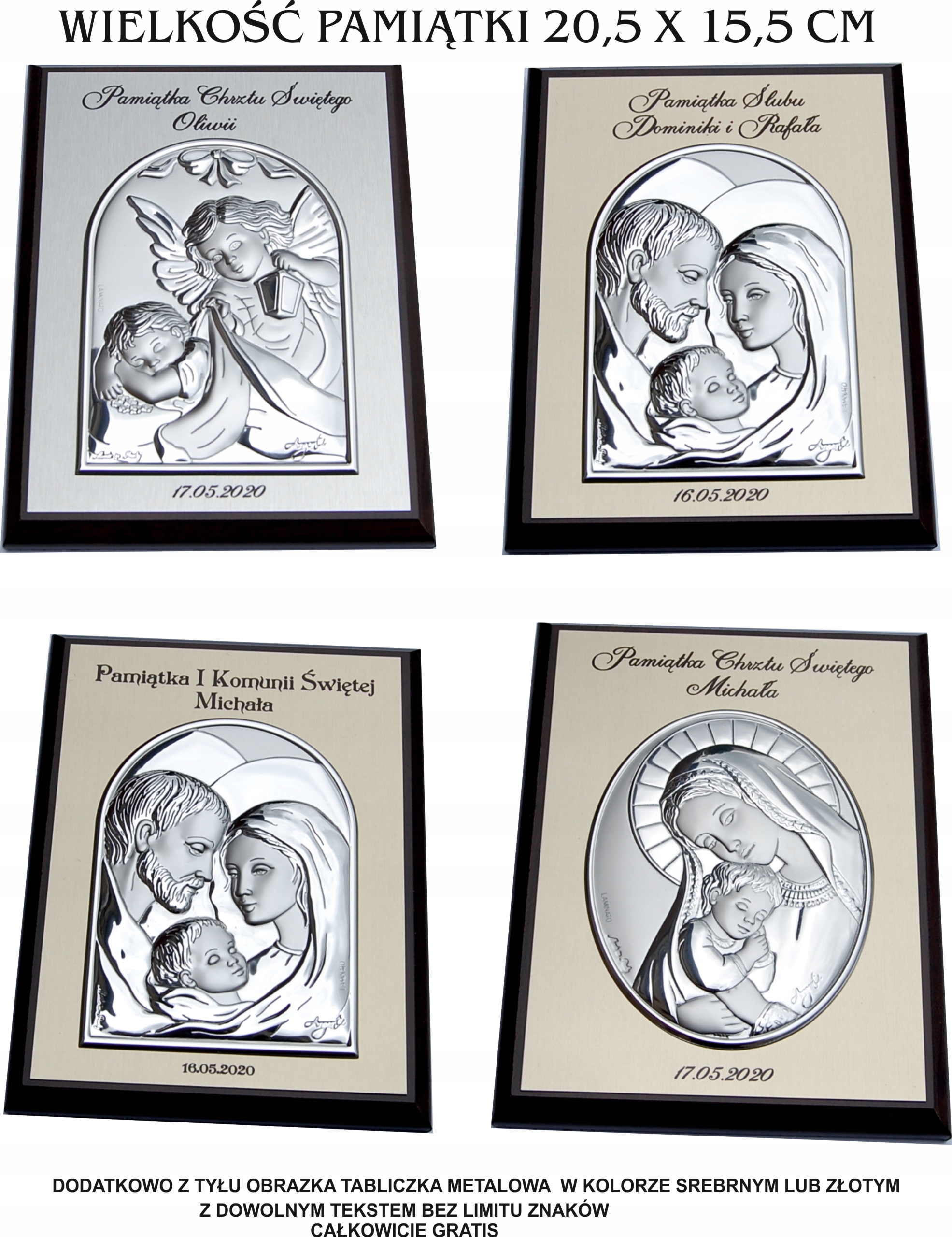 ЗОБРАЖЕННЯ СРІБЛО XXL 20,5 Х 15,5 СМ ХРЕЩЕННЯ, ВЕСІЛЛЯ