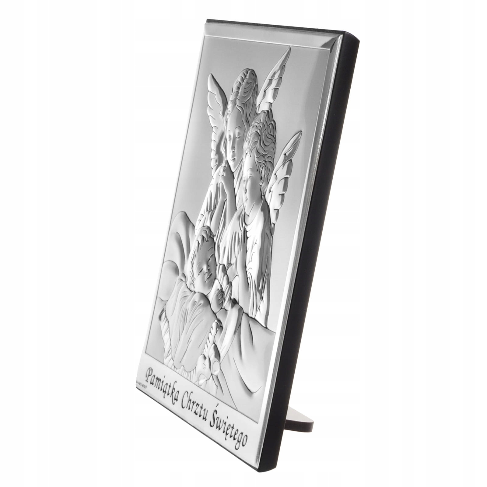 Ексклюзивна срібна картина італійського виробництва, створена компанією, лідером у виробництві срібної сувенірної продукції. На картині зображено двох ангелів, які спостерігають за сплячою дитиною, а внизу напис: СУВЕНІР СВЯТОГО ХРЕЩЕННЯ. Тому він ідеально підходить як унікальний подарунок чи сувенір до особливої події, якою є Святе Хрещення.