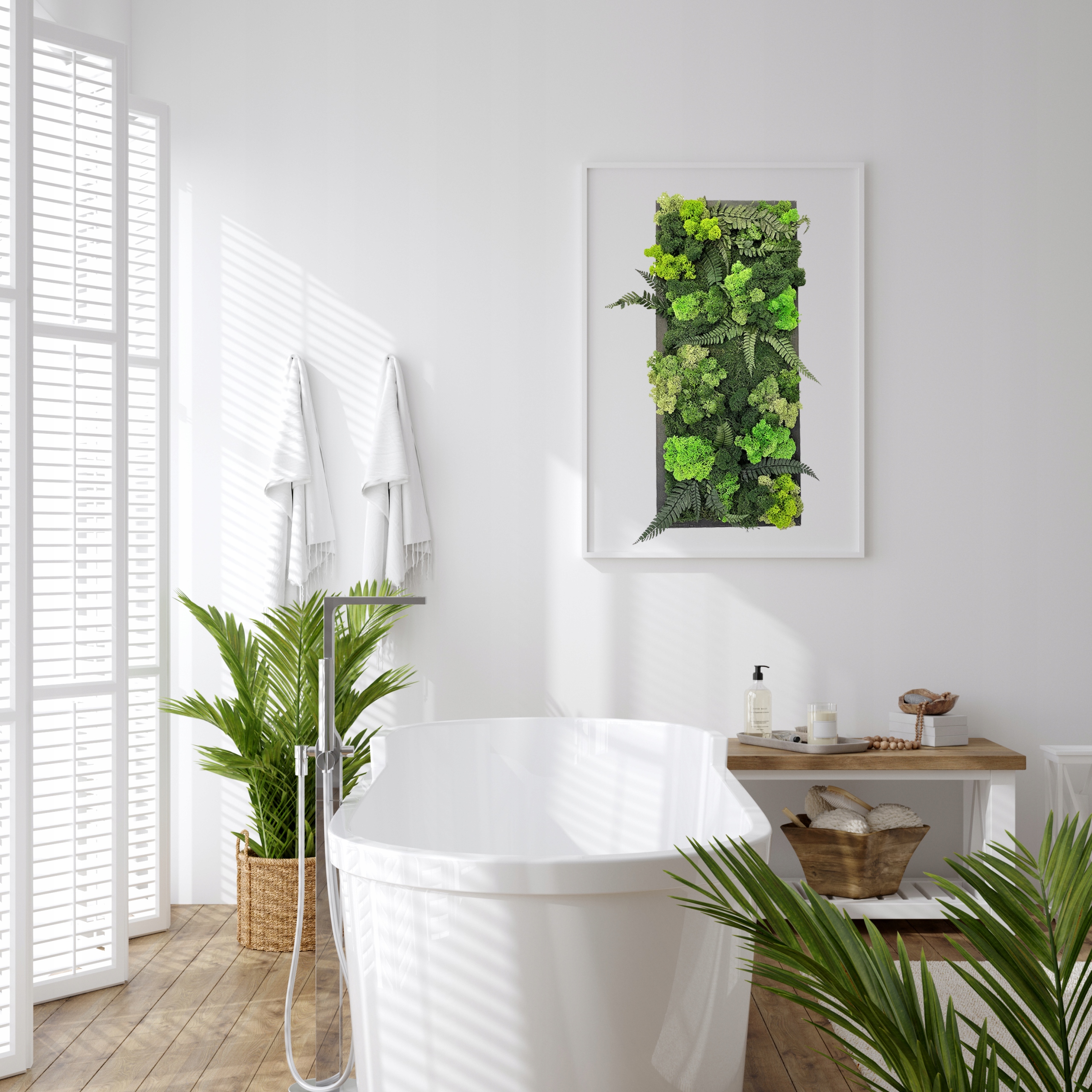 Chrobotki не потребує сонця, тому ви можете легко використовувати його в кімнатах без доступу до вікон. У ванній кімнаті лишайник може грати не лише декоративну роль - оскільки мох сильно гігроскопічний, він поглине зайву вологу з повітря, запобігаючи розвитку грибів та цвілі!