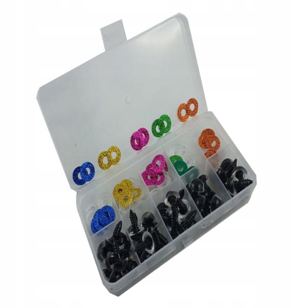 Набір люверсів у практичному органайзері, який забезпечить порядок і полегшить ідентифікацію розмірів. Вона стане в нагоді кожній любительці талісманів гачком. Очі мають заглушки, які не дозволяють їх відірвати від іграшки