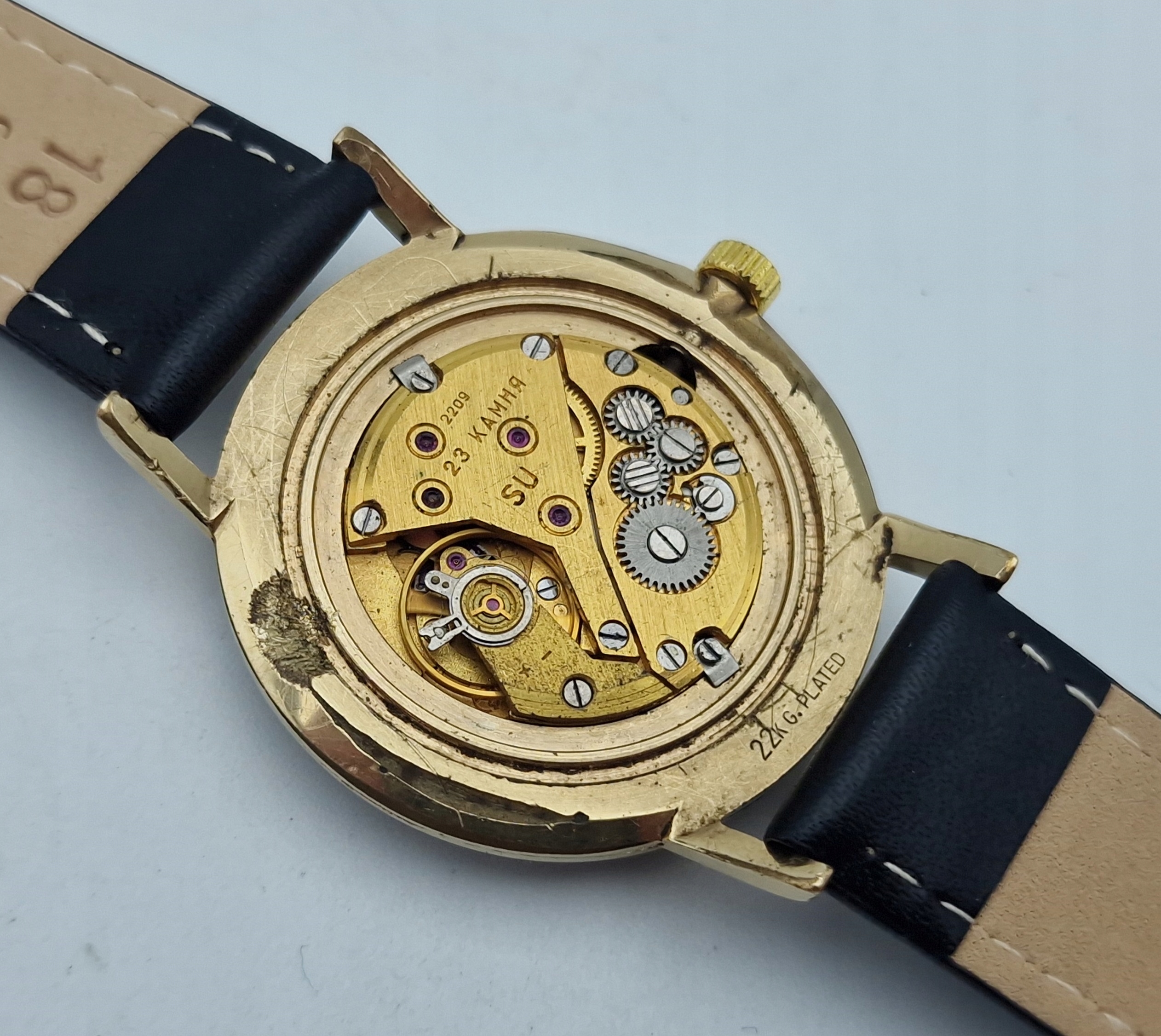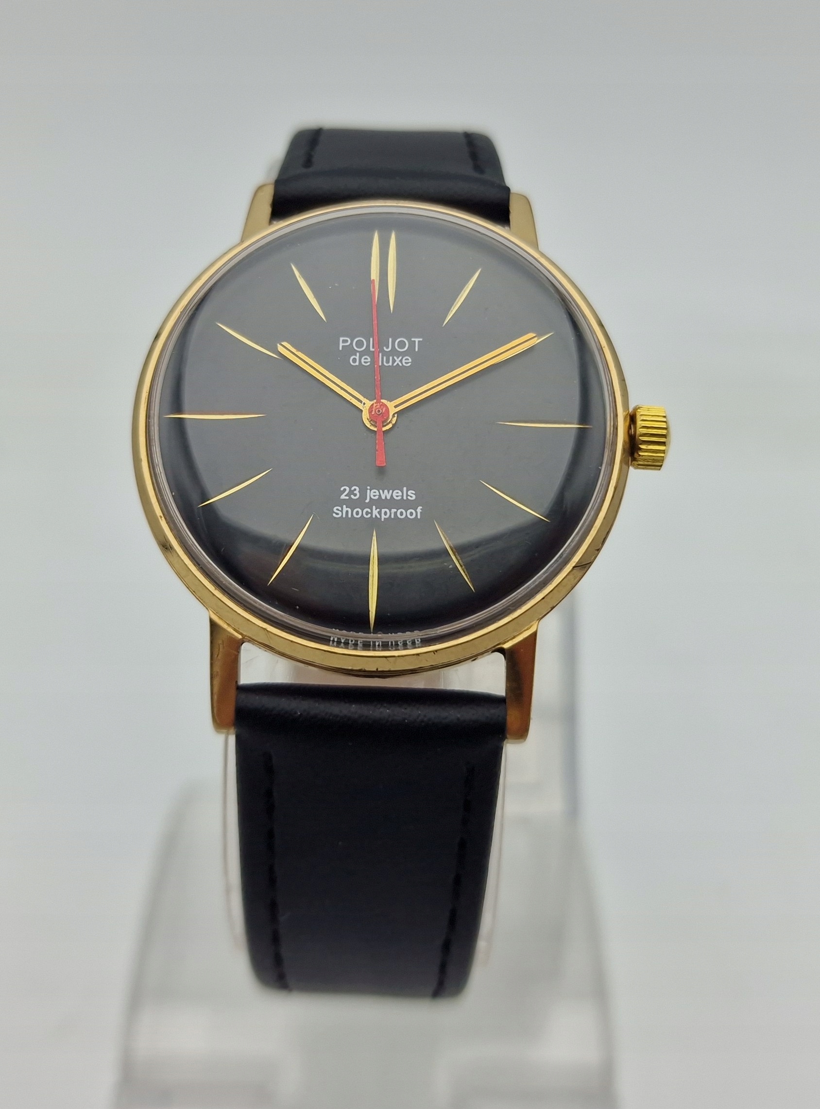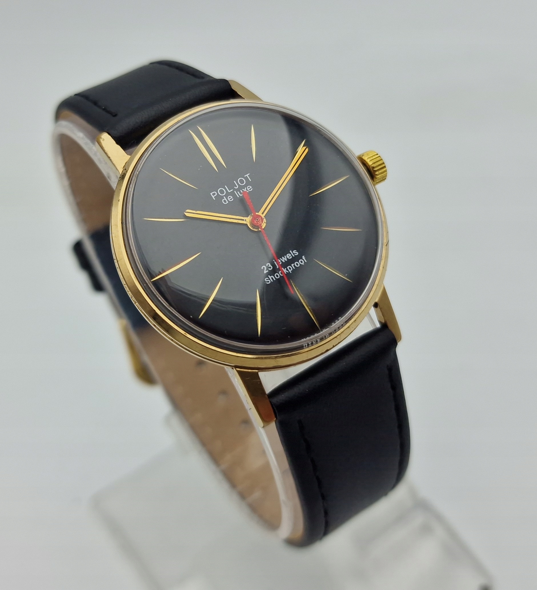 ZŁOCONY MĘSKI ZEGAREK POLJOT DE LUXE 23J LATA 60-TE - IDEAŁ