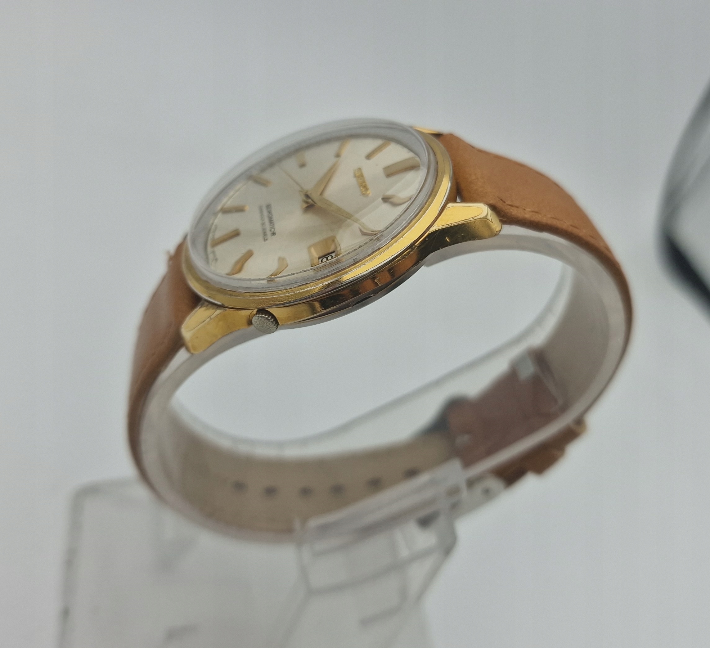 ZŁOCONY MĘSKI ZEGAREK SEIKO SEIKOMATIC-R 30 JEWELS LATA 60-TE - BIAŁY KRUK