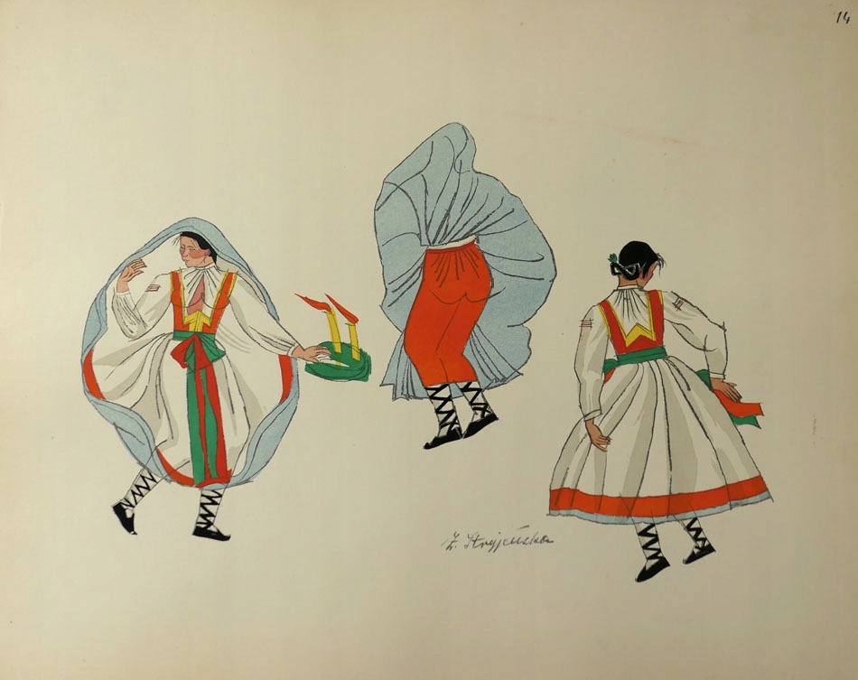 Графіка походить з портфоліо: З. Стриєнська, Польські селянські костюми. Зі вступом та примітками Таді Северин, куратора Етнографічного музею в Кракові, ред. C. Szwedzicki, Nice 1939. Дошка 2. Література: «Зофія Стриєнська. Каталог виставки Національного музею в Кракові», Краків 2008, стор. «Зофія Стриєнська», Światosław Lenartowicz, Wydawnictwo Bosz, 2018, стор