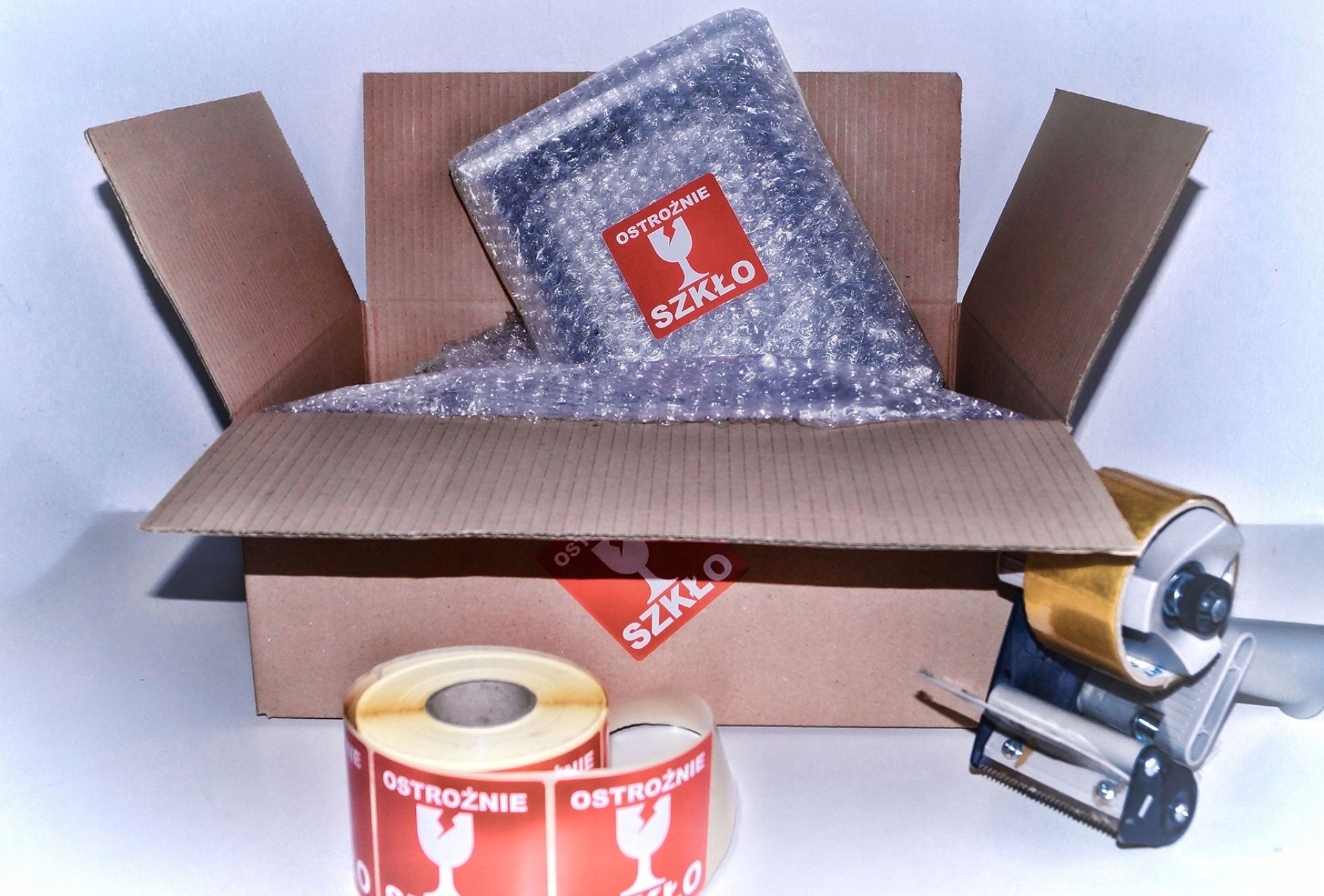 ✅ Після запечатування коробки, коробка додатково маркується попереджувальними наклейками для кур'єрів.