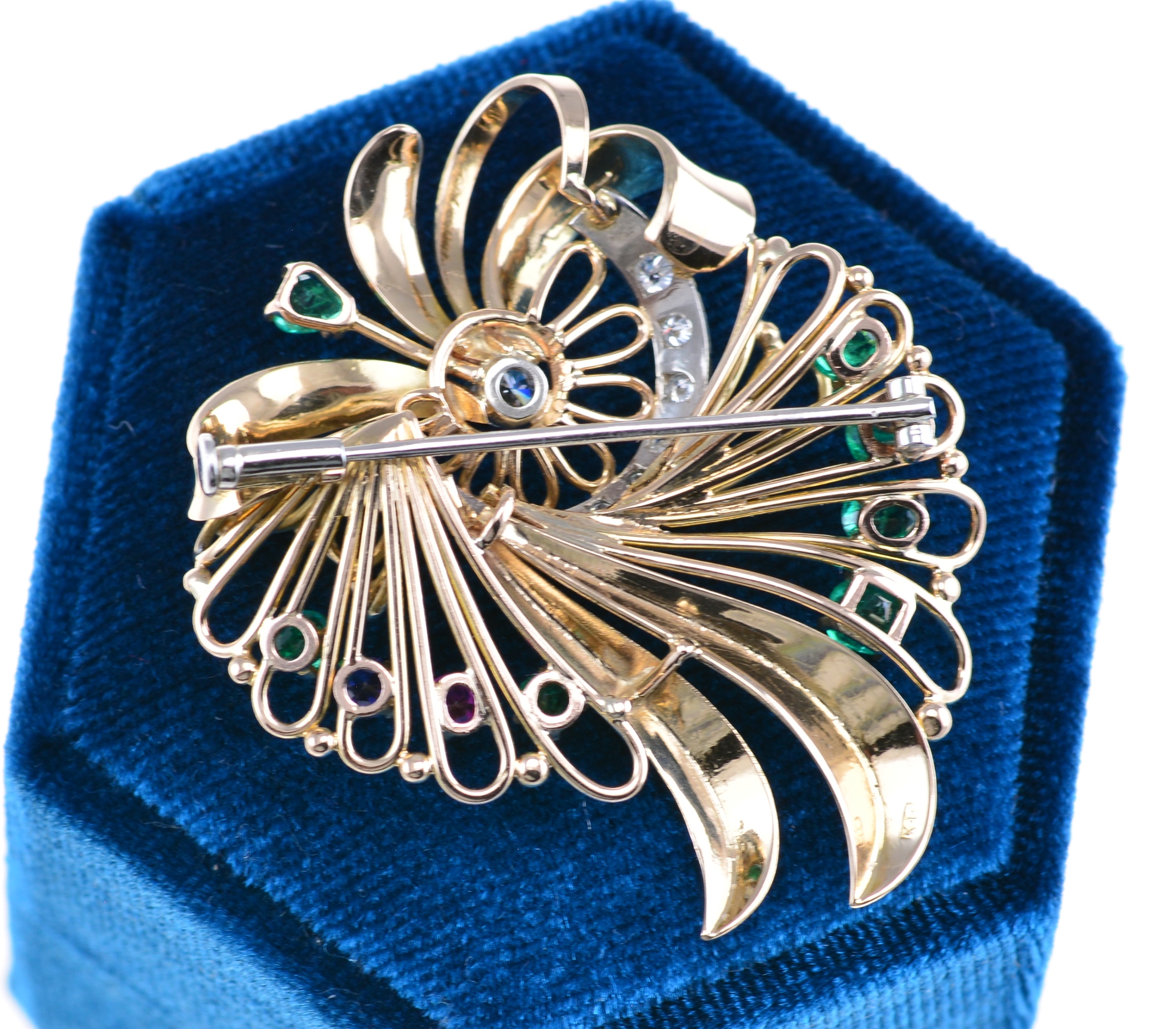 Золота брошка 14К з барвистими дорогоцінними каменями