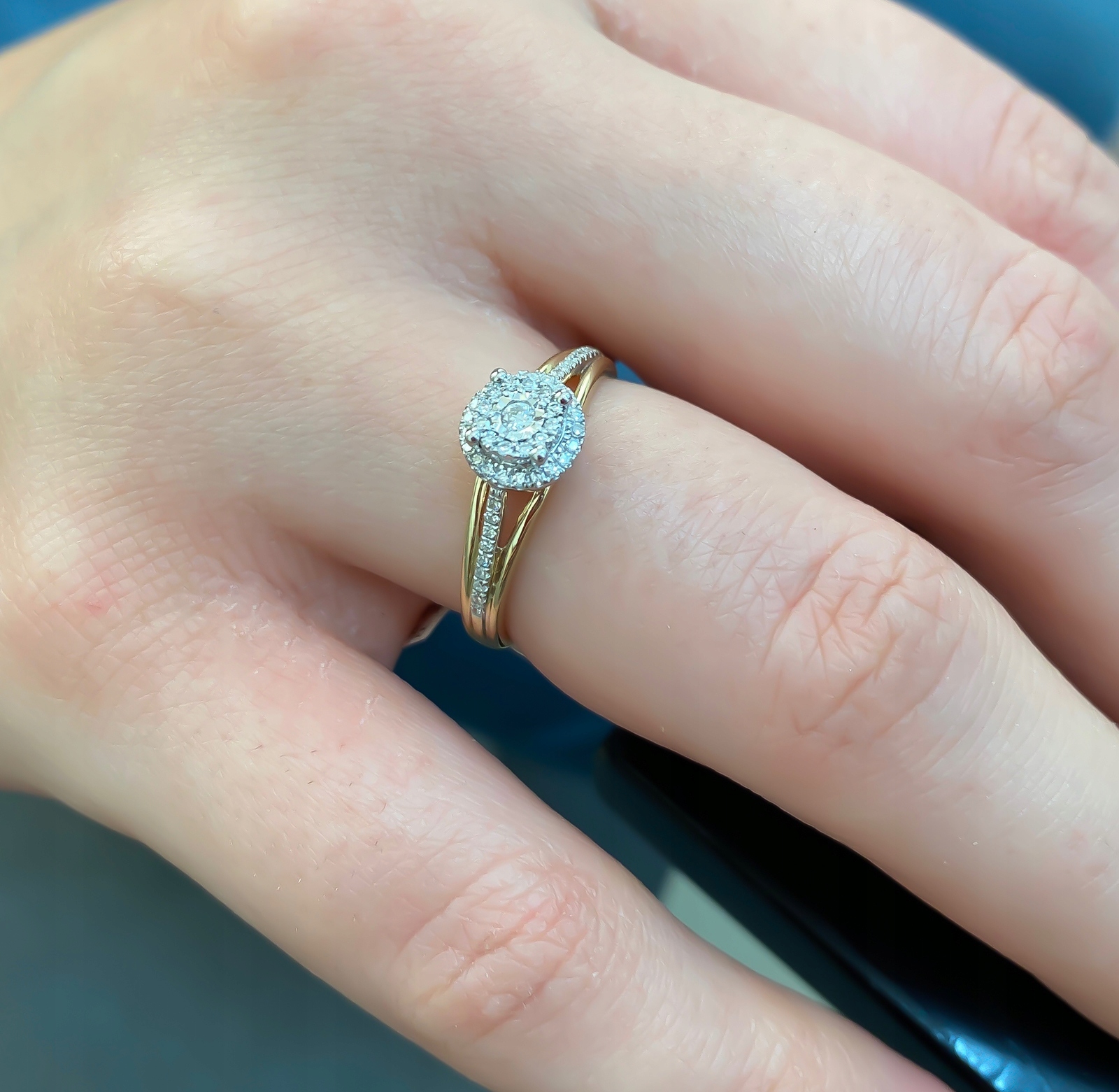 КІЛЬЦЕ З ДІАМАНТАМИ ЖОВТО БІЛЕ ЗОЛОТО 585 ПРОБИ (ПІД ЗАМОВЛЕННЯ)