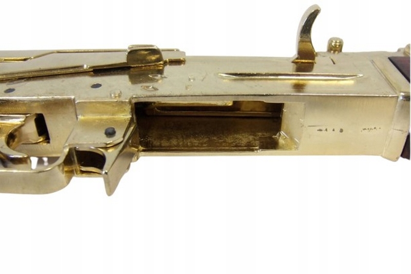 Деталі: знімна кришка газової камери, знімна дуга. магазин (заглушка), робоча затворна рама і затвор, що направляється нею, кулачок з відкидним плечем, позначеним у литому (не виконує своїх функцій), робочий спусковий гачок із засувкою магазина, рухливий важіль регулювання, розташований на права стінка ствольної коробки (три положення: нижнє - ведення одиночного вогню, середнє - безперервний вогонь і верхнє - кріплення зброї), металеві скоби для кріплення ременя. Все це зроблено з ZnAl золотого кольору. Приклад, руків'я і бочкотримач виготовлені з вітраженої та лакованої деревини. Можливість перезавантаження та повернення т.зв сухий удар.