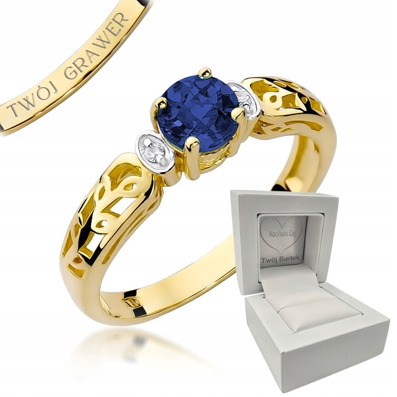 ЗОЛОТА ОБРУЧКА З САПФІРОМ І ДІАМАНТАМИ ЗОЛОТО 585 ГРАВЮРА