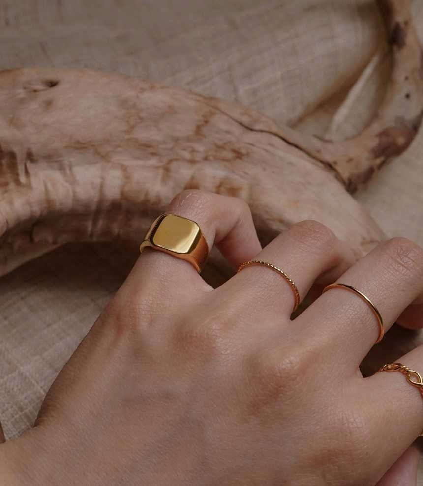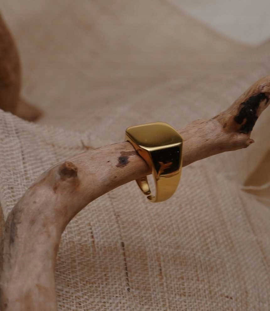 Золота каблучка з печаткою з латуні, позолочена 18-каратним золотом