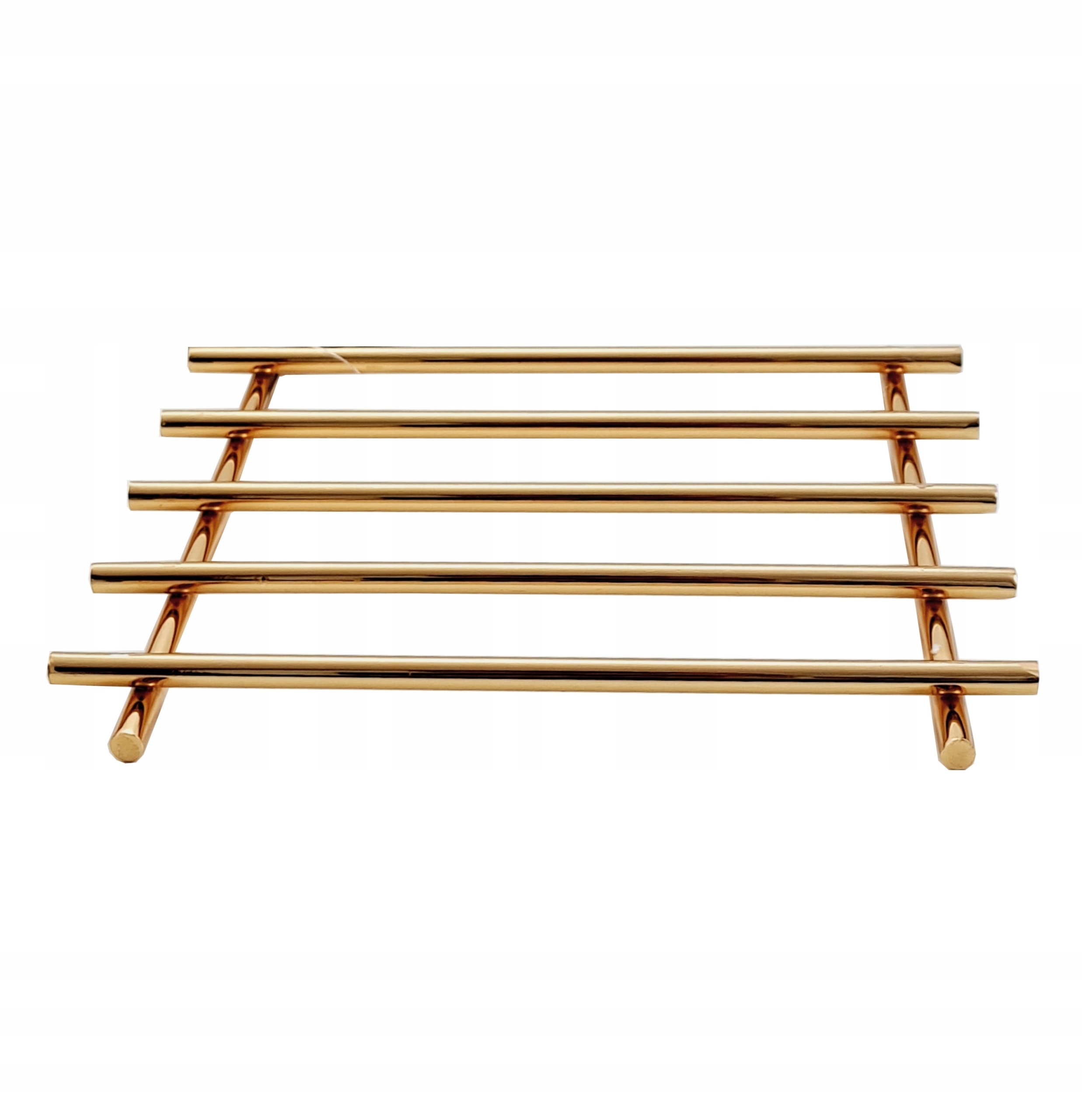 Підставка METLEX - виріб, виконаний у кольорах золота. Його проста конструкція складається лише з двох витягнутих ніжок, на яких є чотири прямокутні «трубки», що утворюють основу. Це мінімалістичний кухонний аксесуар, але ми запевняємо вас, що його зовнішній вигляд і функціональність відповідатимуть вашим вимогам. Розміри виробу 20х20 см.