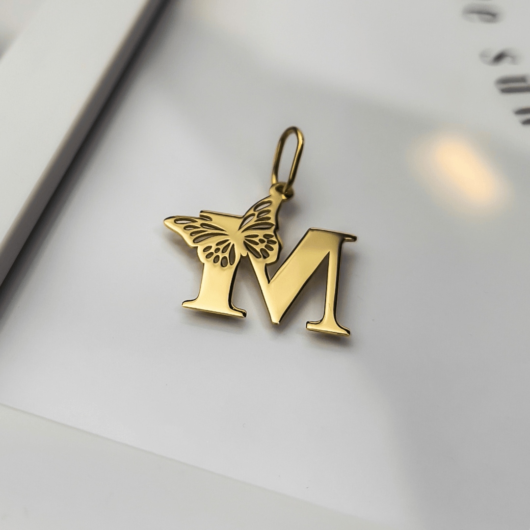 Золота підвіска буква М з метеликом - пр.585
