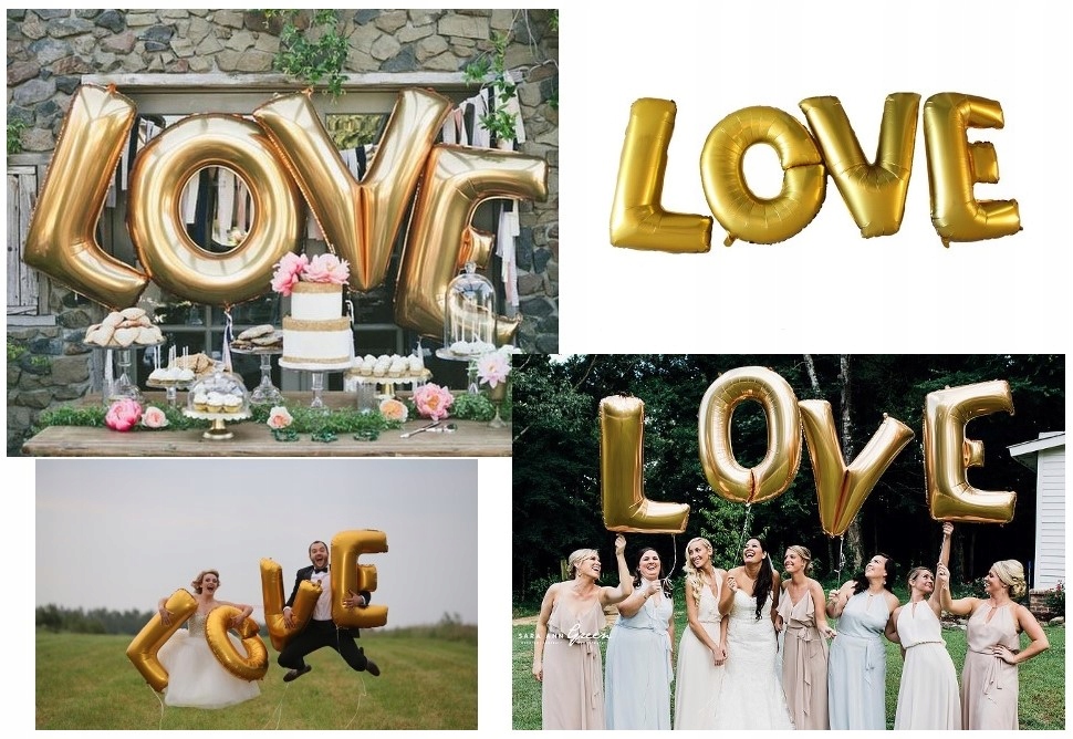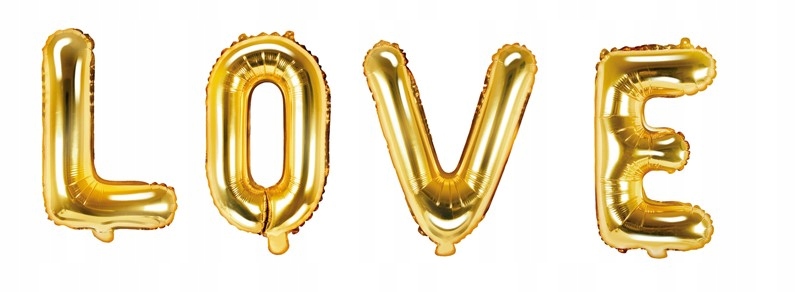 Повітряні кулі металеві літери "L", "O", "V" і "E" золотистого кольору, висота близько 40 см.