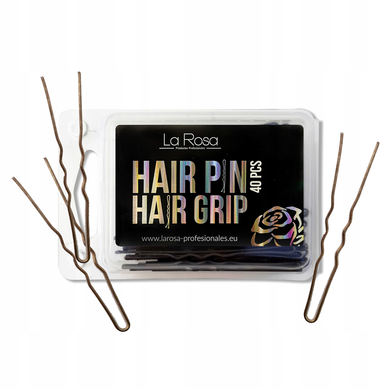 Класичний пучок від La Rosa. Набір із 40 штук золотистих шпильок, упакованих у практичну пластикову упаковку, яка легко відкривається та закривається. Пучки з гофрованим краєм, що полегшує кріплення до волосся. Дуже міцний і простий у використанні.