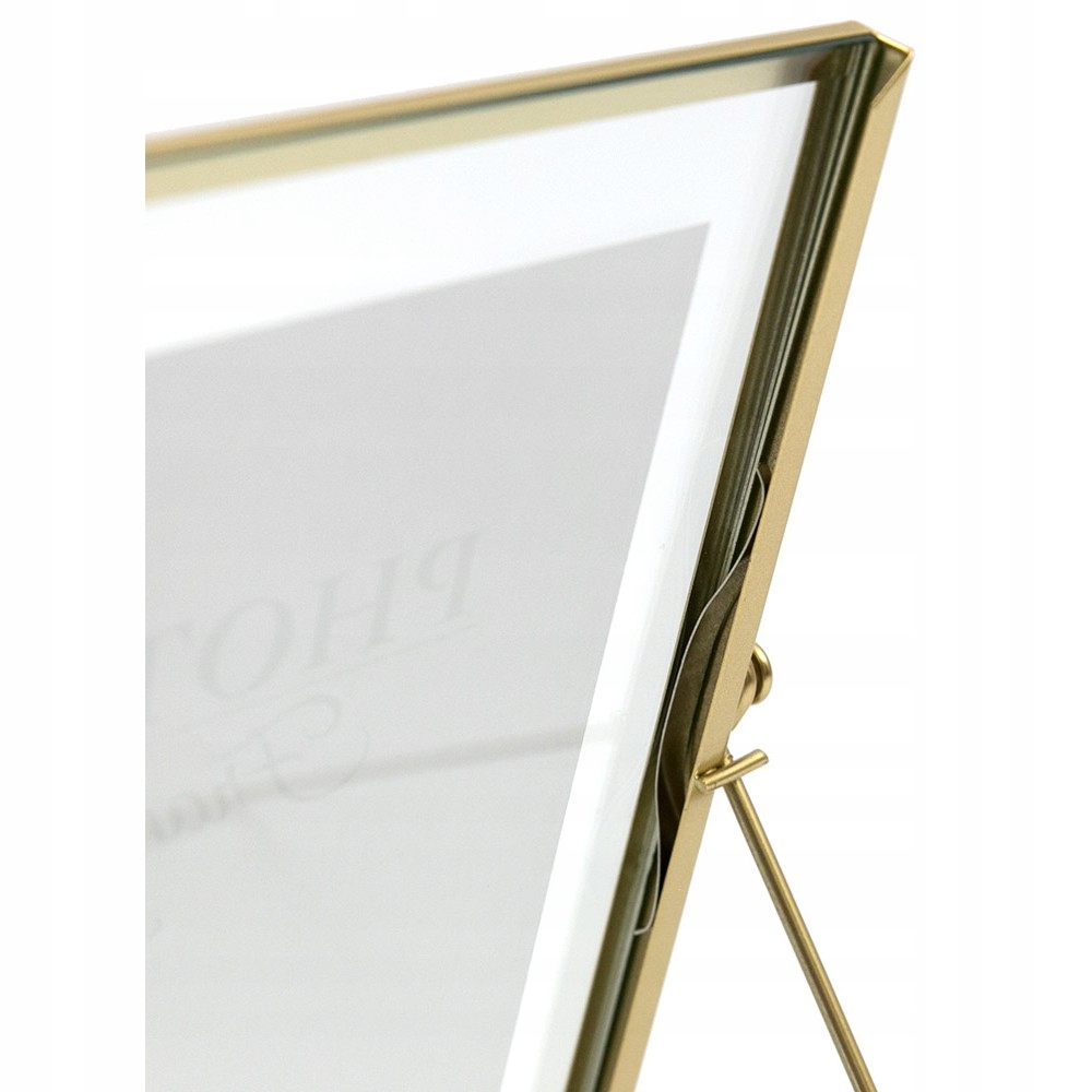 Видатна прямокутна рамка золотистого кольору. Ідеально підходить для представлення улюблених фотографій за розміром 13х18 см. Кадр виготовляється мінімалістичним способом, підтримуючи витонченість. Це буде добре виглядати в елегантній кімнаті, і завдяки естетиці це буде дуже приємним доповненням. Він має можливість розміщувати лише вертикально.