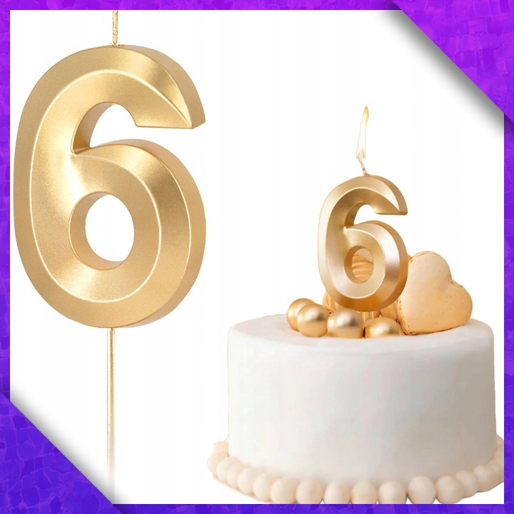 Золота свічка металева номер 6 Шість декоративних свічок для торта