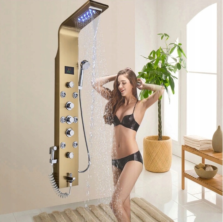 Золота світлодіодна душова панель з 8 масажними форсунками 6 на 1 x573