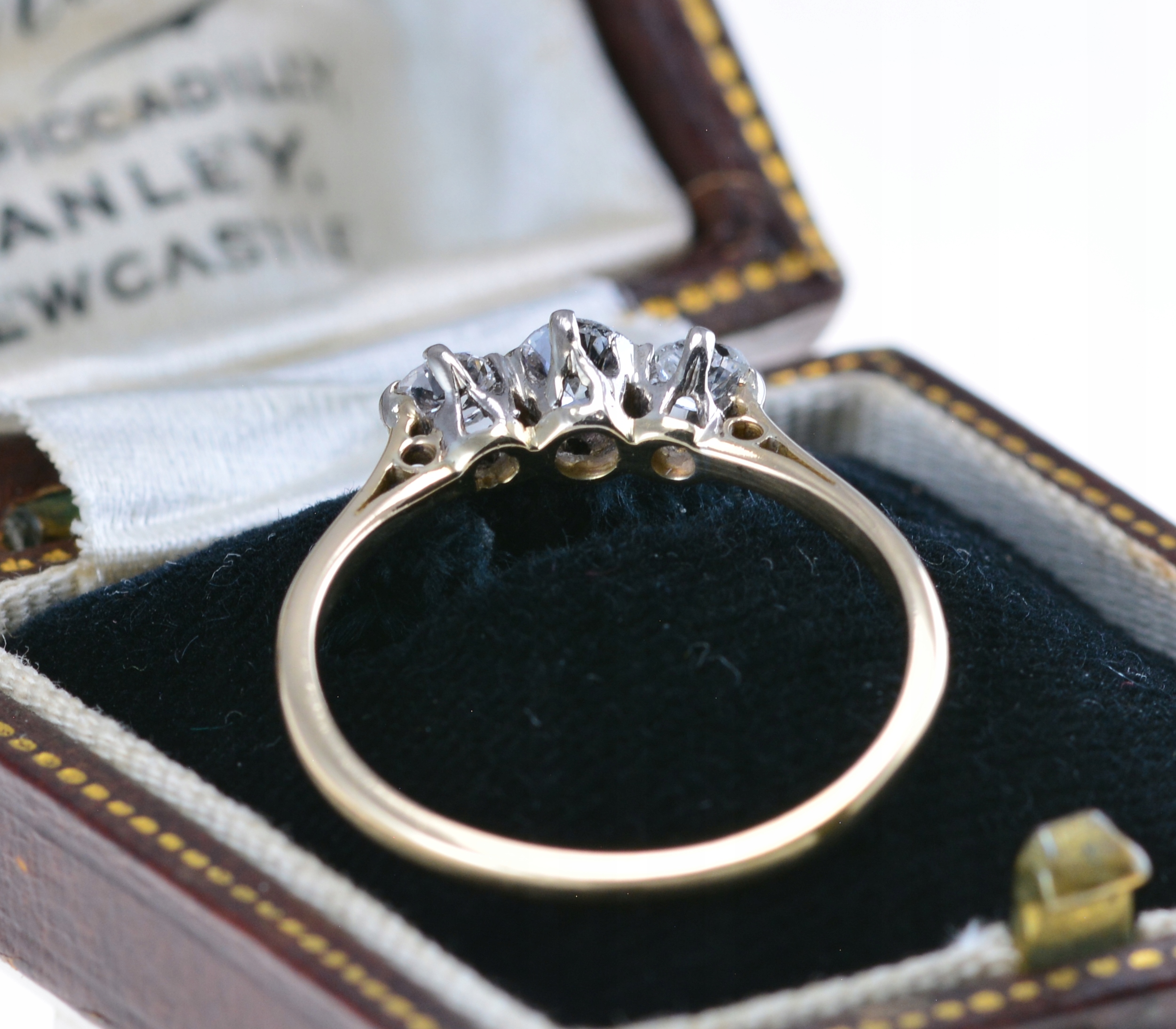 - вищі золоті золоті, прикрашені трьома діамантами у старому різання з загальною вагою 0,43 ct та парамовику: Дискретне, позачасове оздоблення.