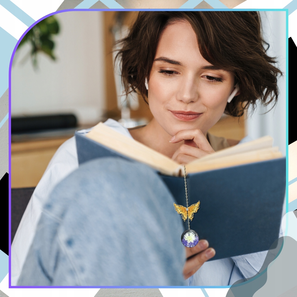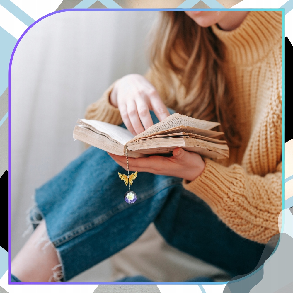 ✅ золота ручка виділяється елегантним мотивом, який символізує пристрасть до письма та літератури. метелики і кристали підвішені на ніжному ланцюзі дають йому унікальний шарм, який привертає увагу. Золотий колір робить вкладку розкішною і ідеально поєднується з кожною книгою, як класичною, так і сучасною.