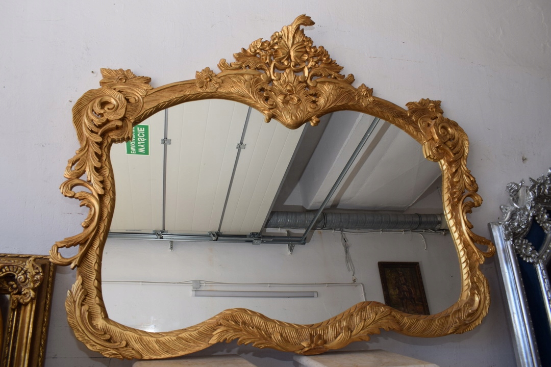 Золоте горизонтальне дзеркало - 100% дерево - унікальне з Франції 114x138см
