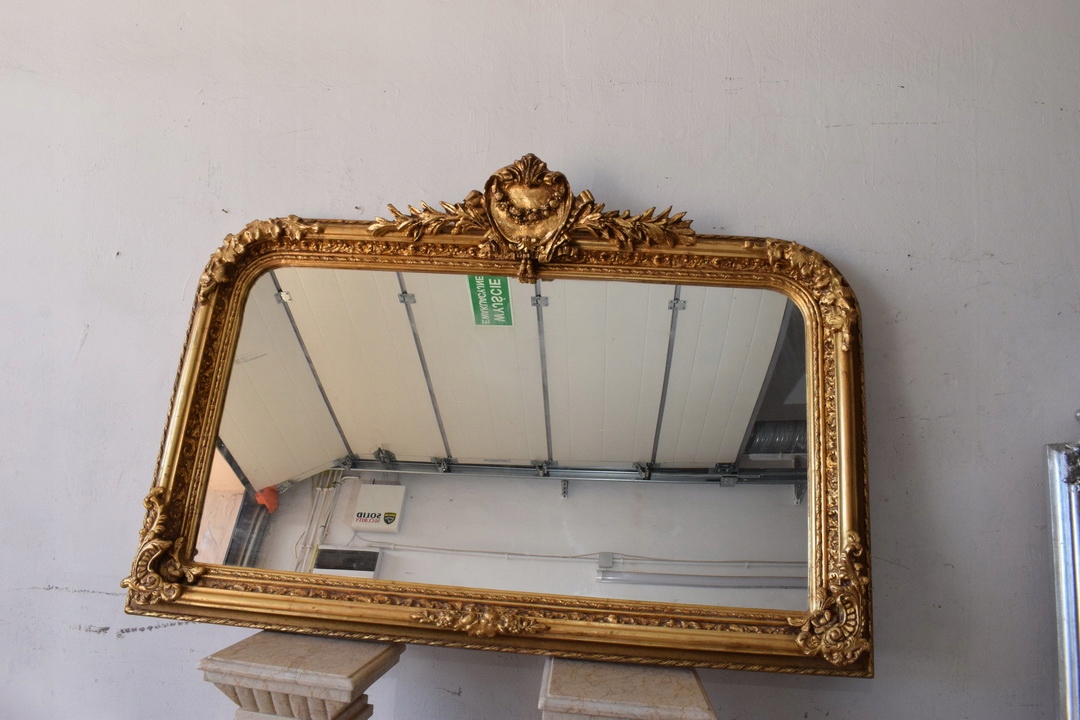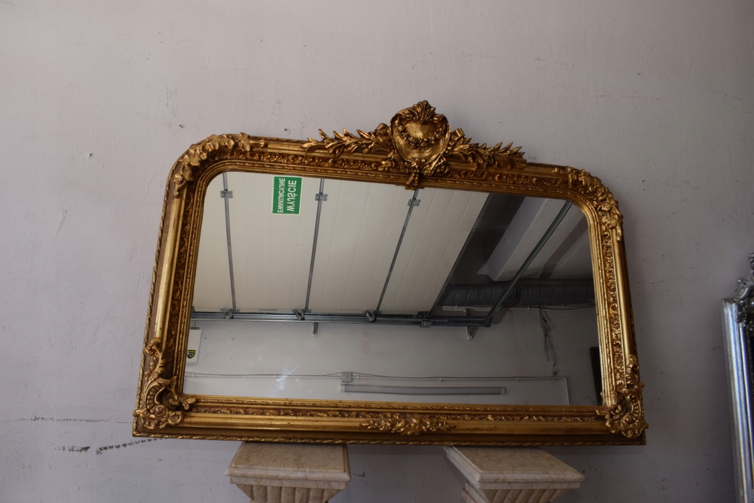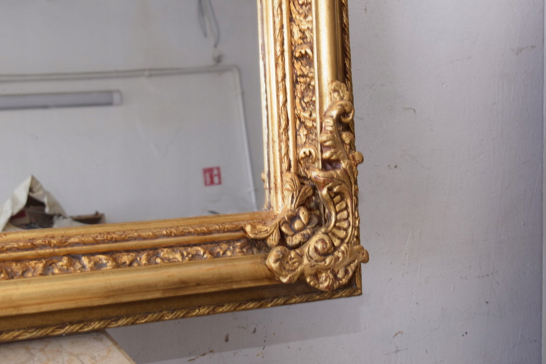 Золоте горизонтальне дзеркало - 100% дерево з рельєфом - унікальне з Франції 97x139 см
