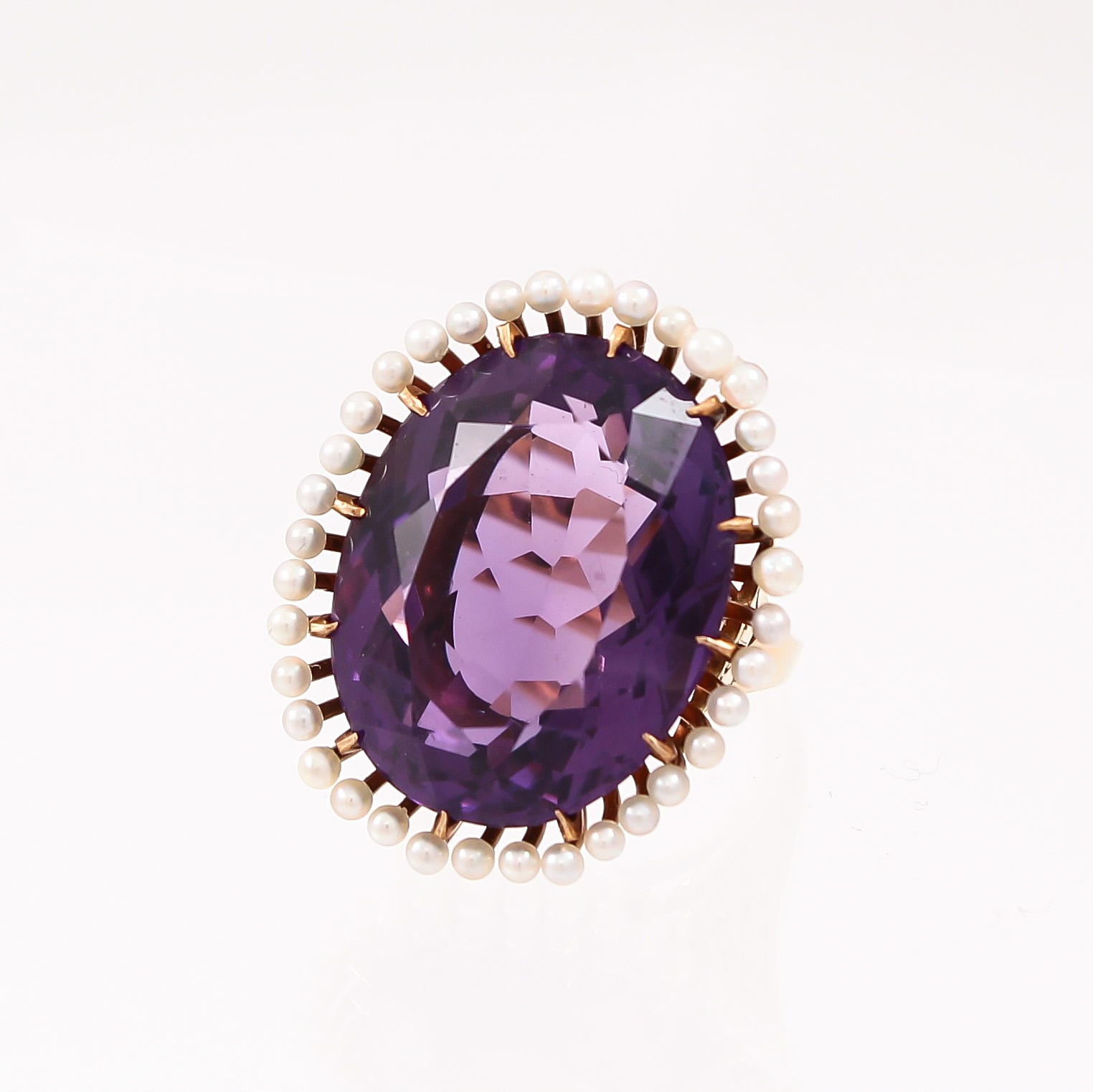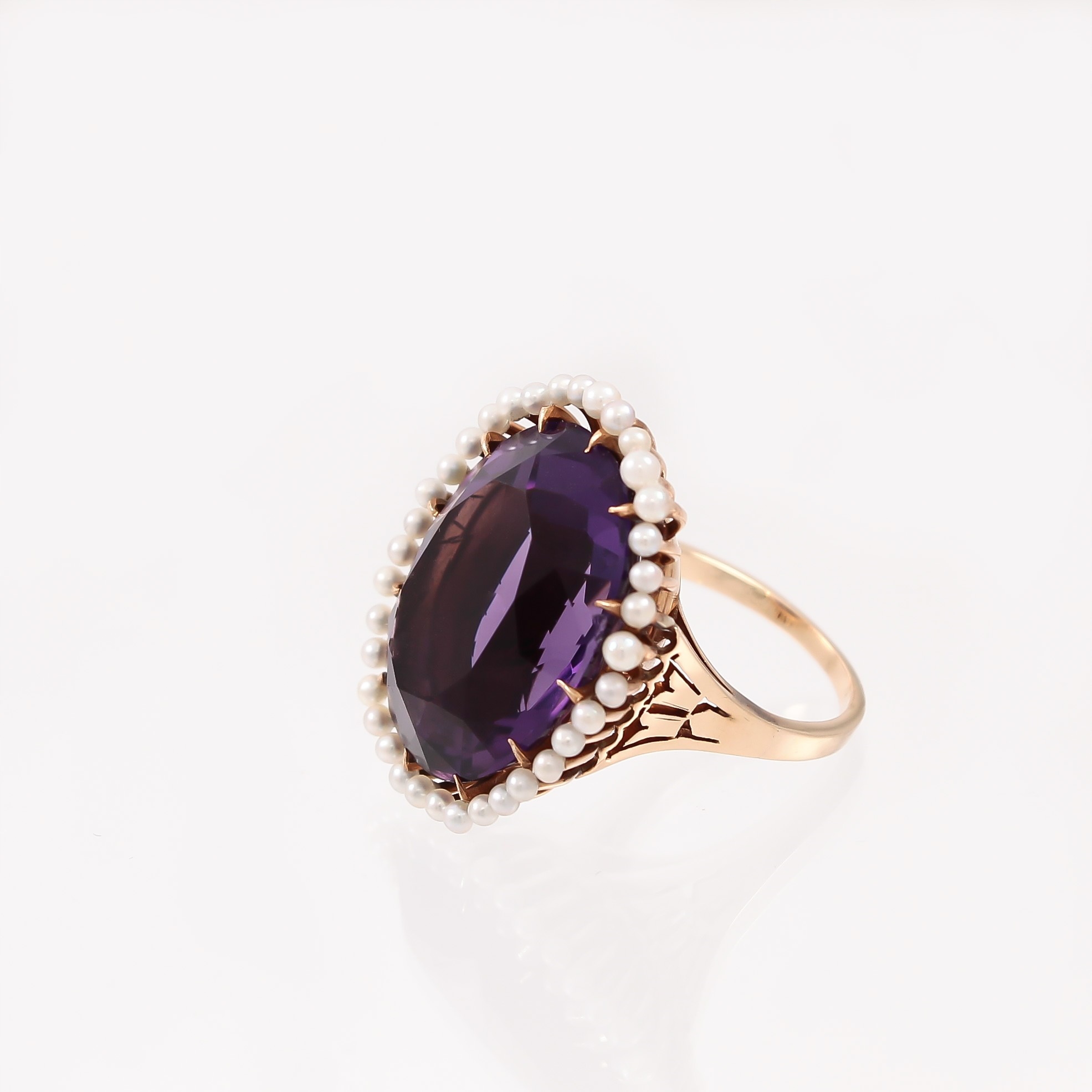 ЗОЛОТЕ КІЛЬЦЕ АМЕТИСТ МОРСЬКИЙ ПЕРЛИ