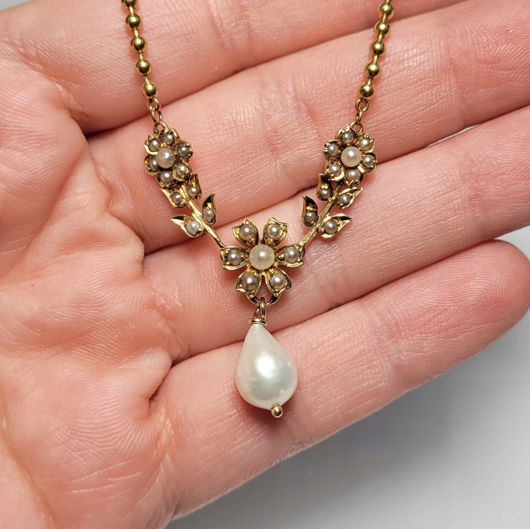 Золоте намисто, перли 0,750 золота, рубіж 19-20 ст., довжина 41,2 см.