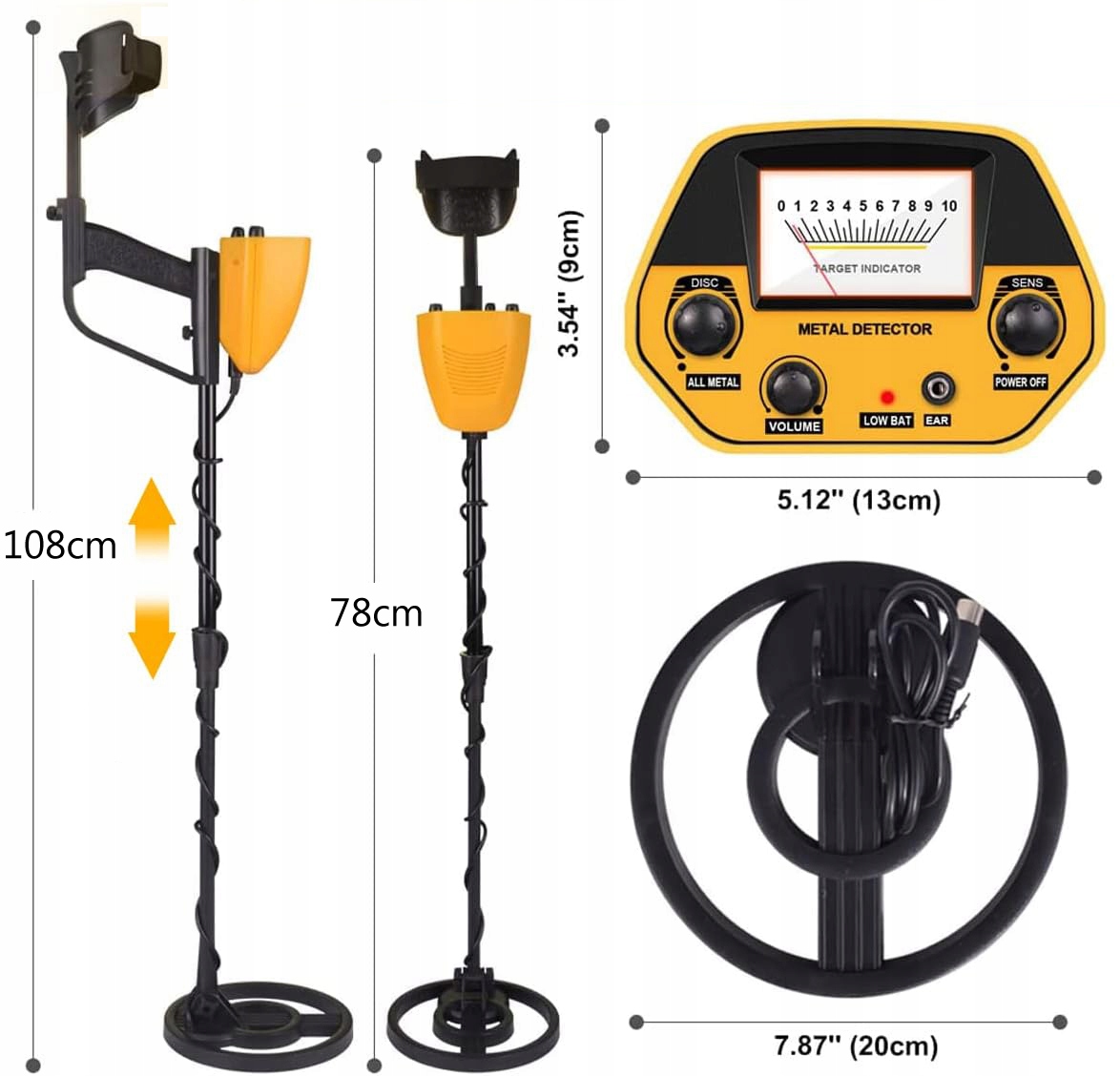 ressing 【хороший вибір для спортивних спортивних спорту】 Вага металошукачів становить лише 1,2 кг. Довжина детектора може бути відрегульована для зручно використовувати його (макс.: 108 см; хв.: 78 см). Детектор відключений і портативний і має універсальний 3,5 -мм роз'єм для навушників, тому ви можете підключити до нього інші навушники (не включені до набору) та адаптувати гучність до різних середовищ.