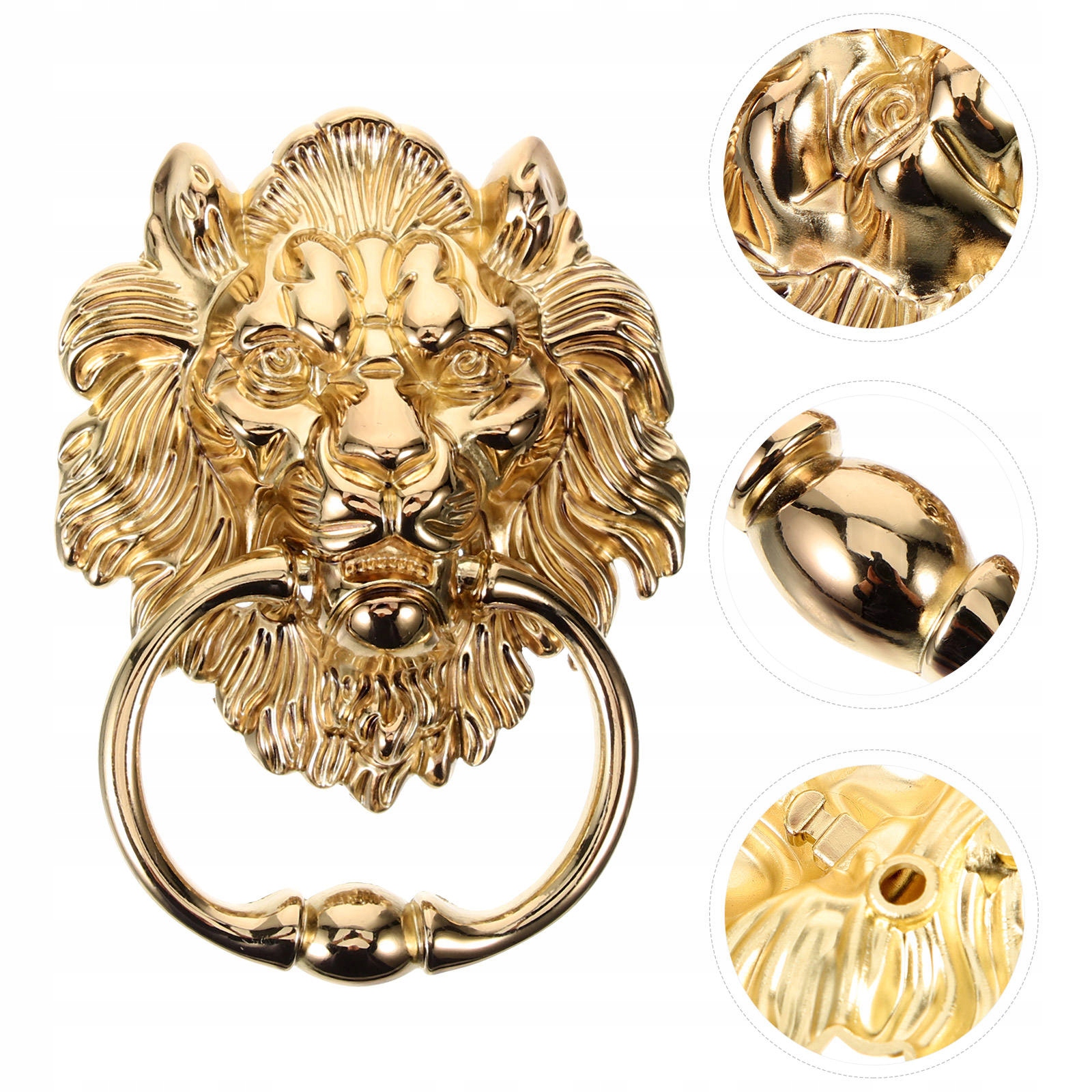 Золоті двері стукають у формі металевої ручки лева та ручки дверей