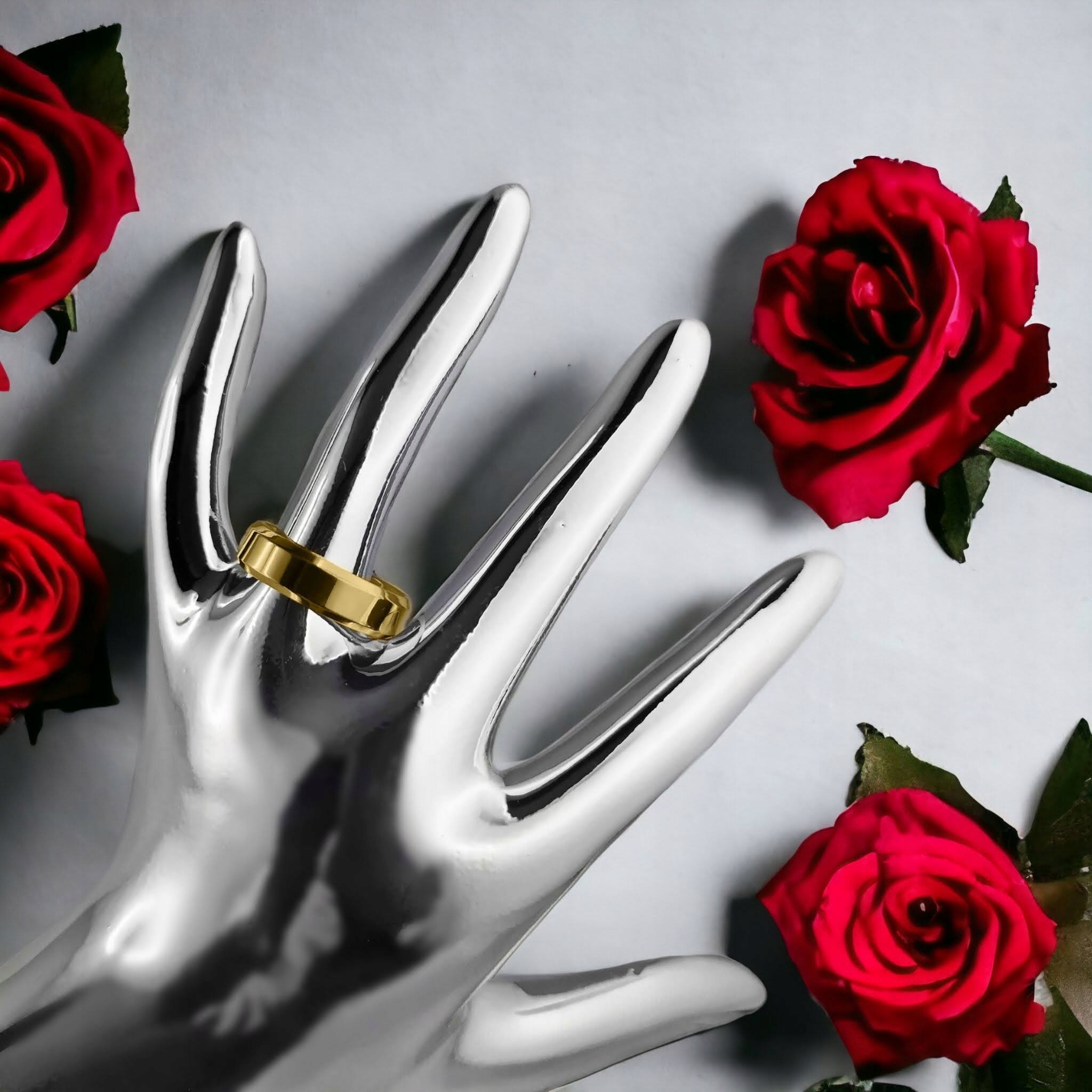 Обручки KO4, розроблені нашими талановитими дизайнерами, є ідеальним поєднанням класики та елегантності. Виготовлені з високоякісної нержавіючої сталі 316L, вони гарантують довговічність і надійність протягом багатьох років. Цей унікальний сталевий сплав не тільки міцний, але й стійкий до корозії, іржі та окислення, що означає, що обручки зберігають свій первісний блиск і красу.