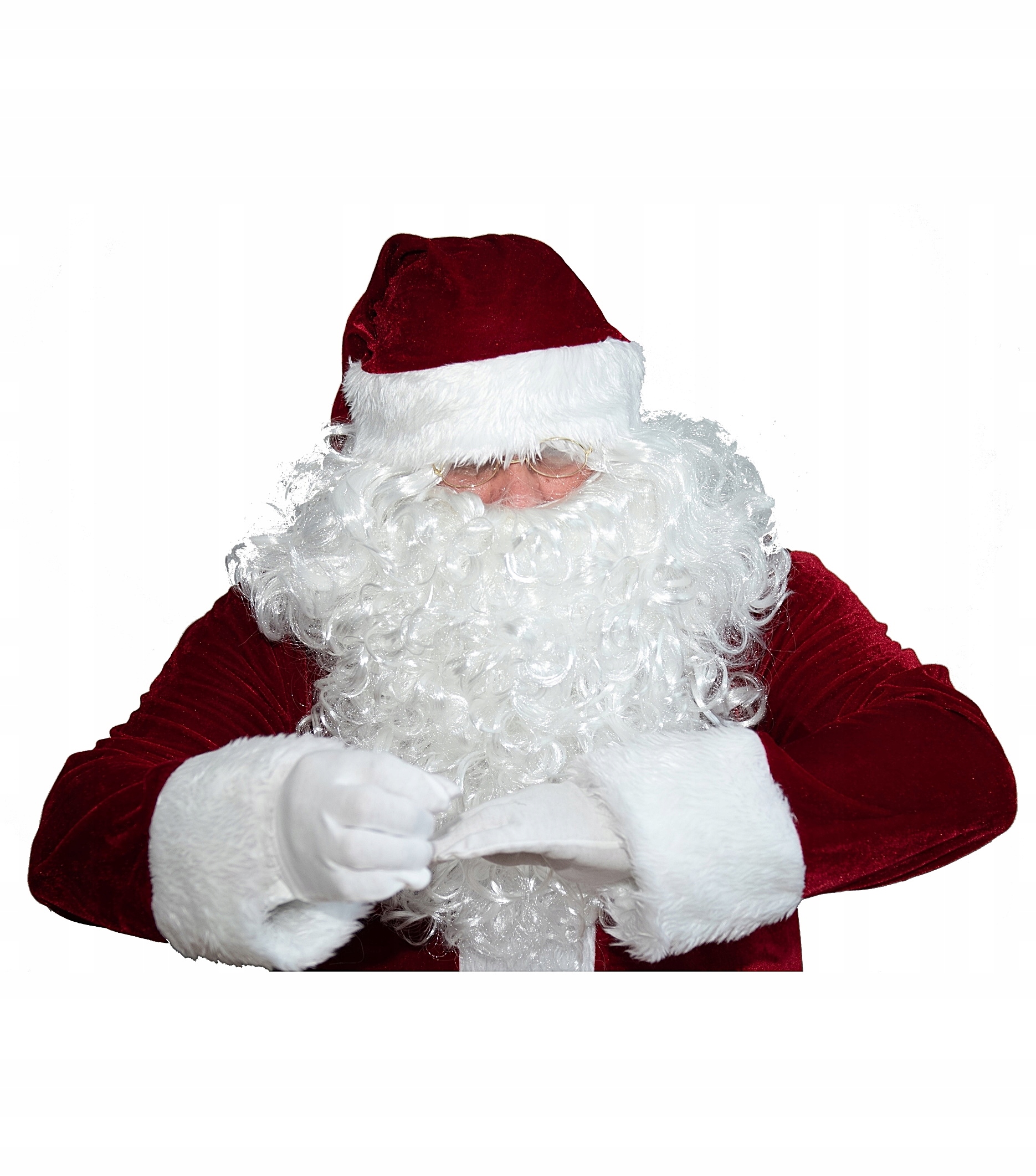 Окуляри мають справжні лінзи та золоту оправу, що створює надзвичайно природний ефект «Санта-Клауса»