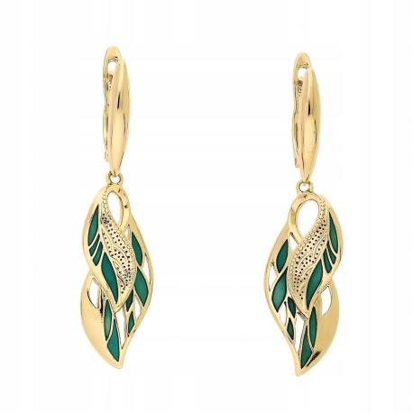 ЗОЛОТІ СЕРЕГИ 4,5 СМ З ХІРУРГІЧНОЇ СТАЛІ ЗЕЛЕНІ