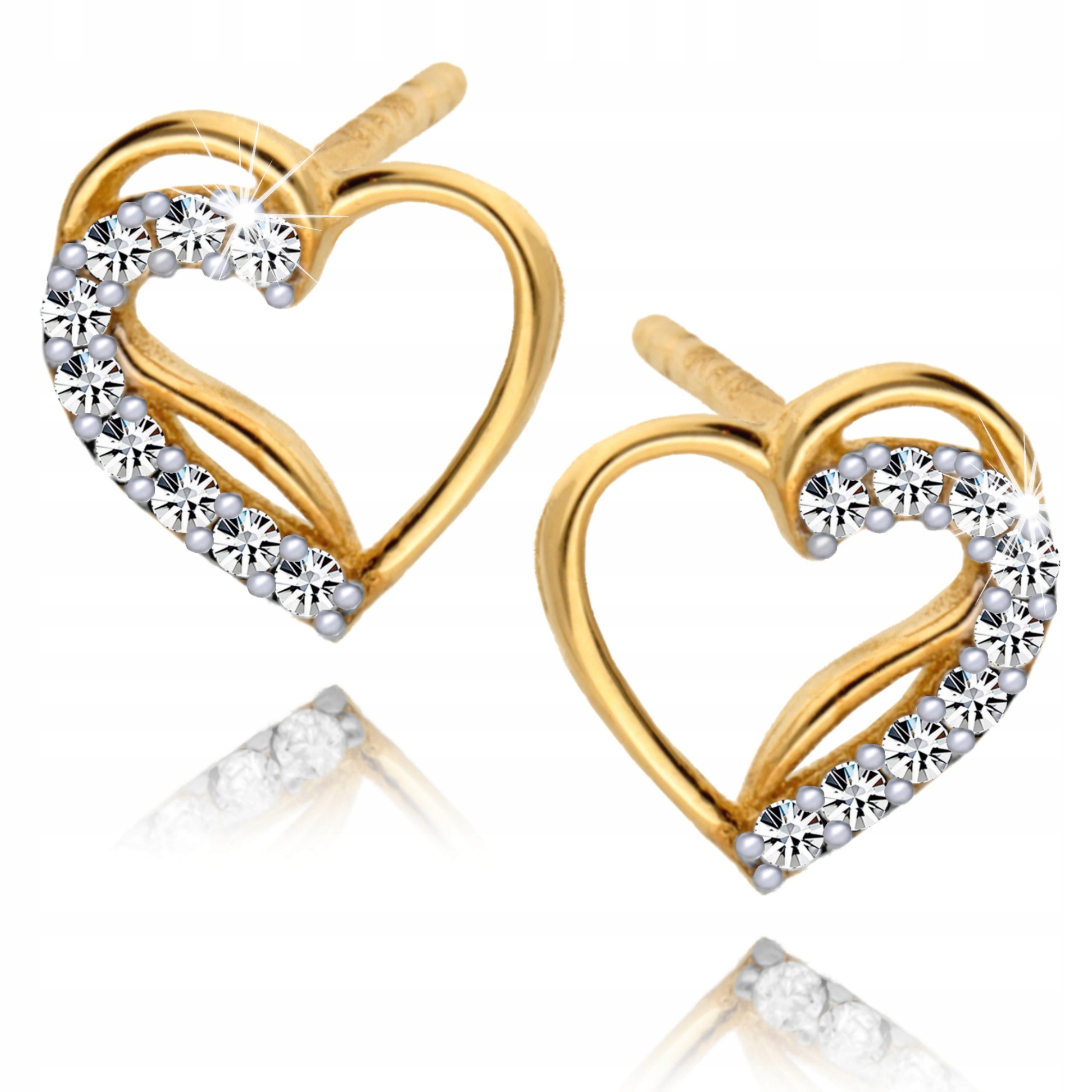 Красиві золоті сережки, серця, підірвані цирконами, закріпленими паличками, зробленими повністю із золотих спроб 333 (8 карат).