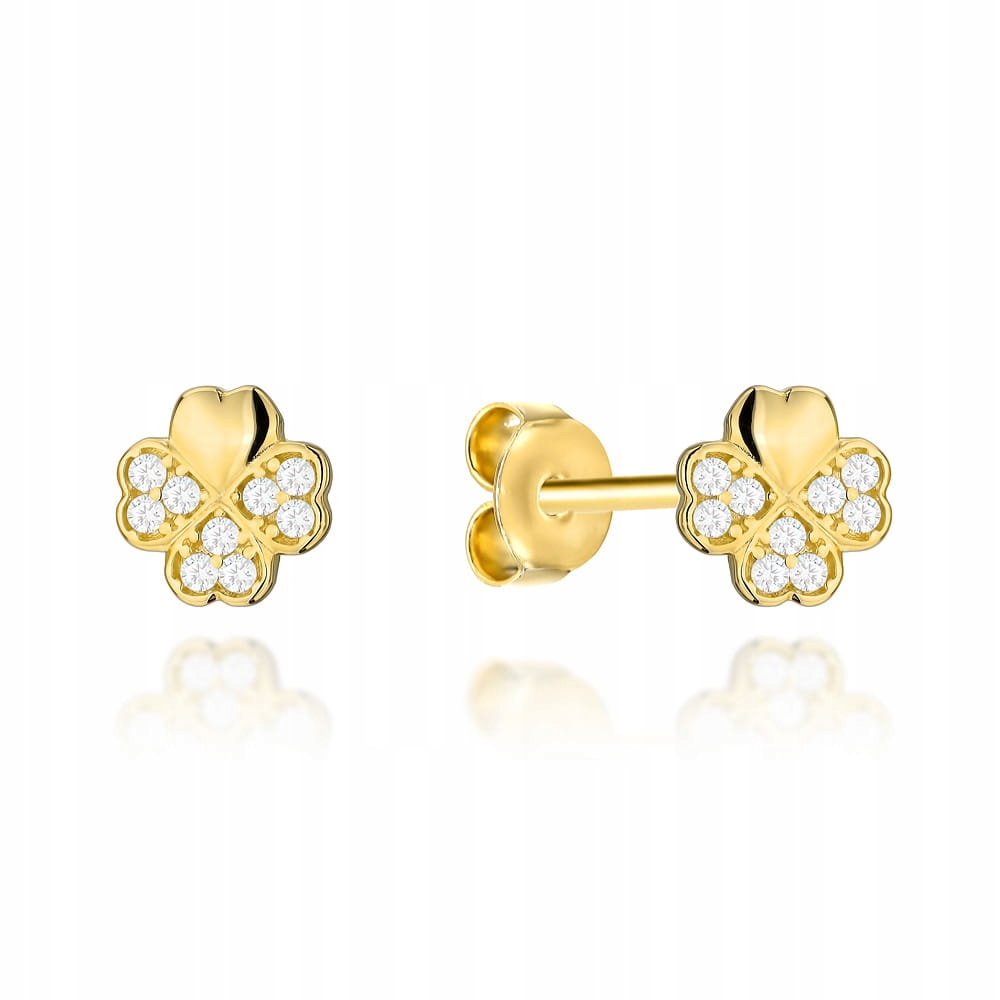 ЗОЛОТІ СЕРЕЖКИ КОНЮШИНИ З ЦИРКОНІЄМ НА ПАЛИЧКАХ