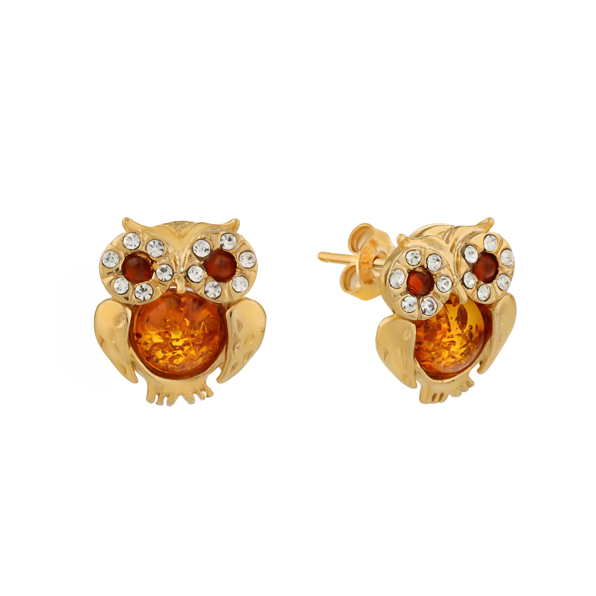ЗОЛОТІ СЕРЕЖКИ-СОВИ З БУРШТИНОМ