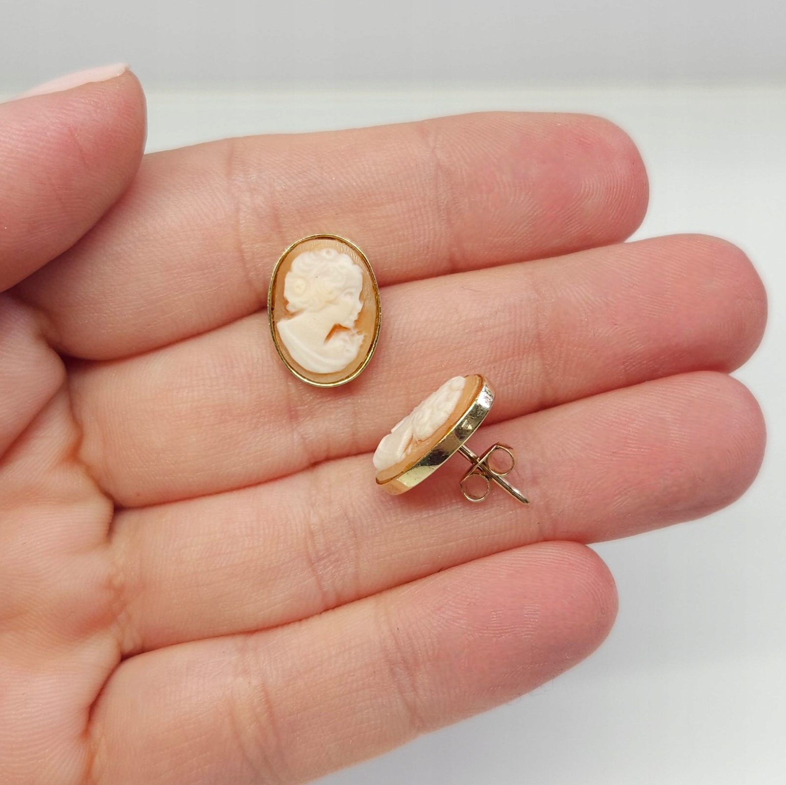Предметом продажу є золоті, овальні сережки - гвоздики з камеями, вирізаними в раковині