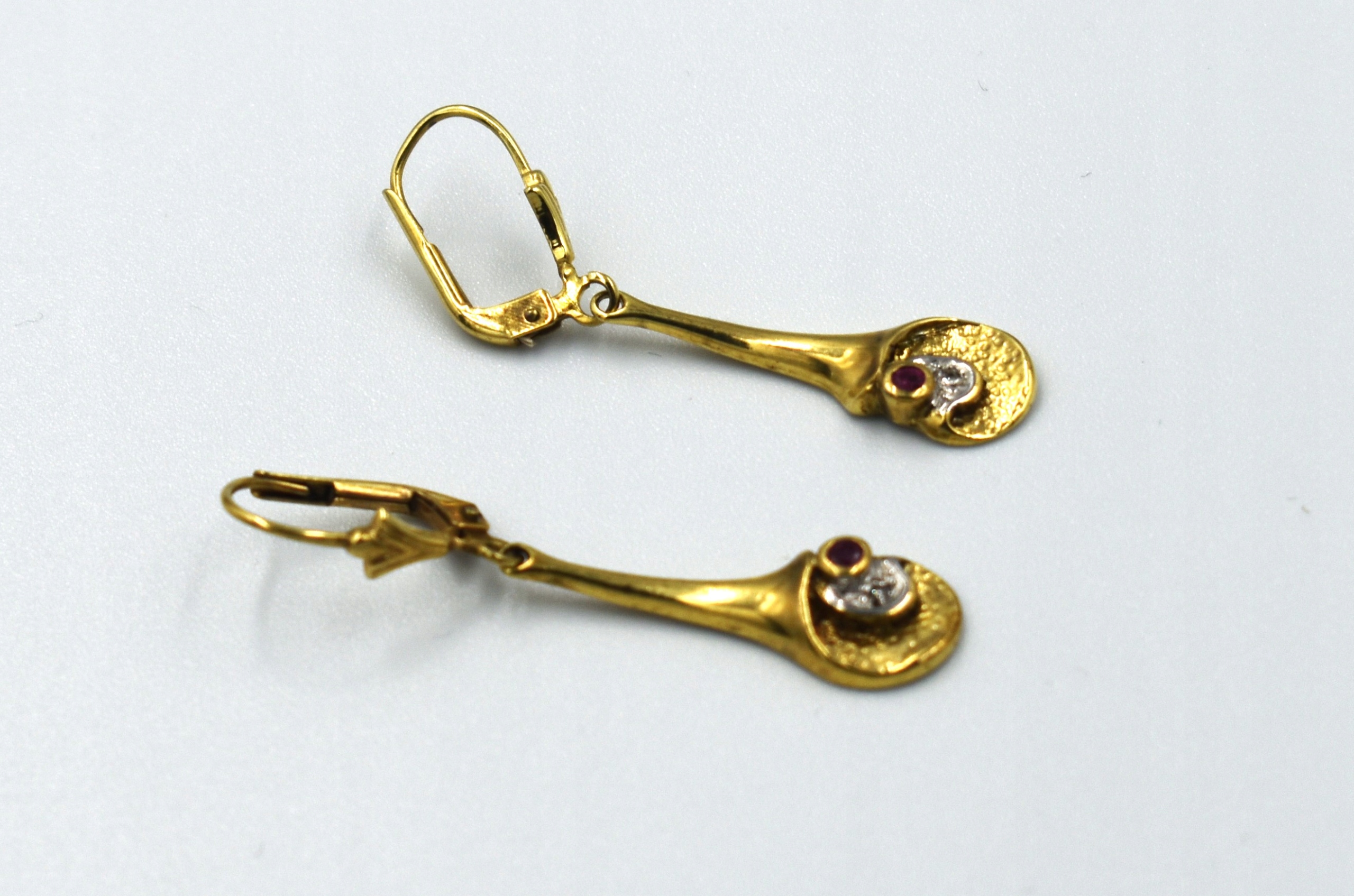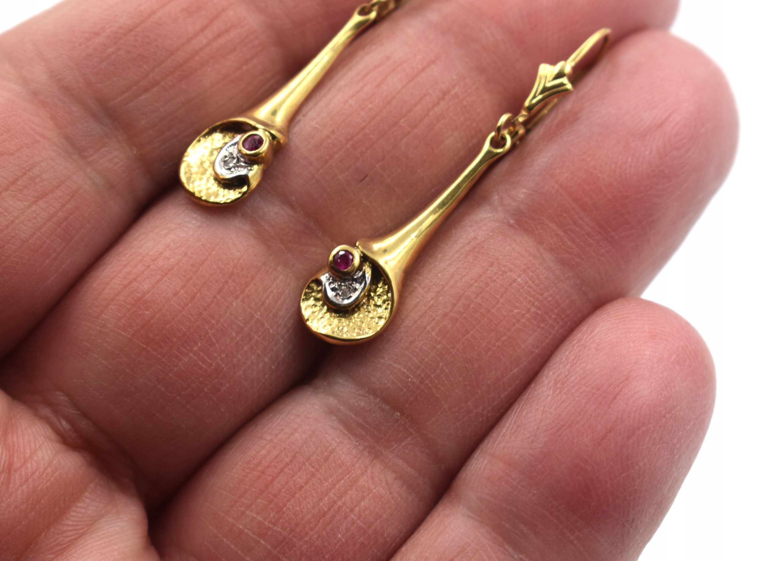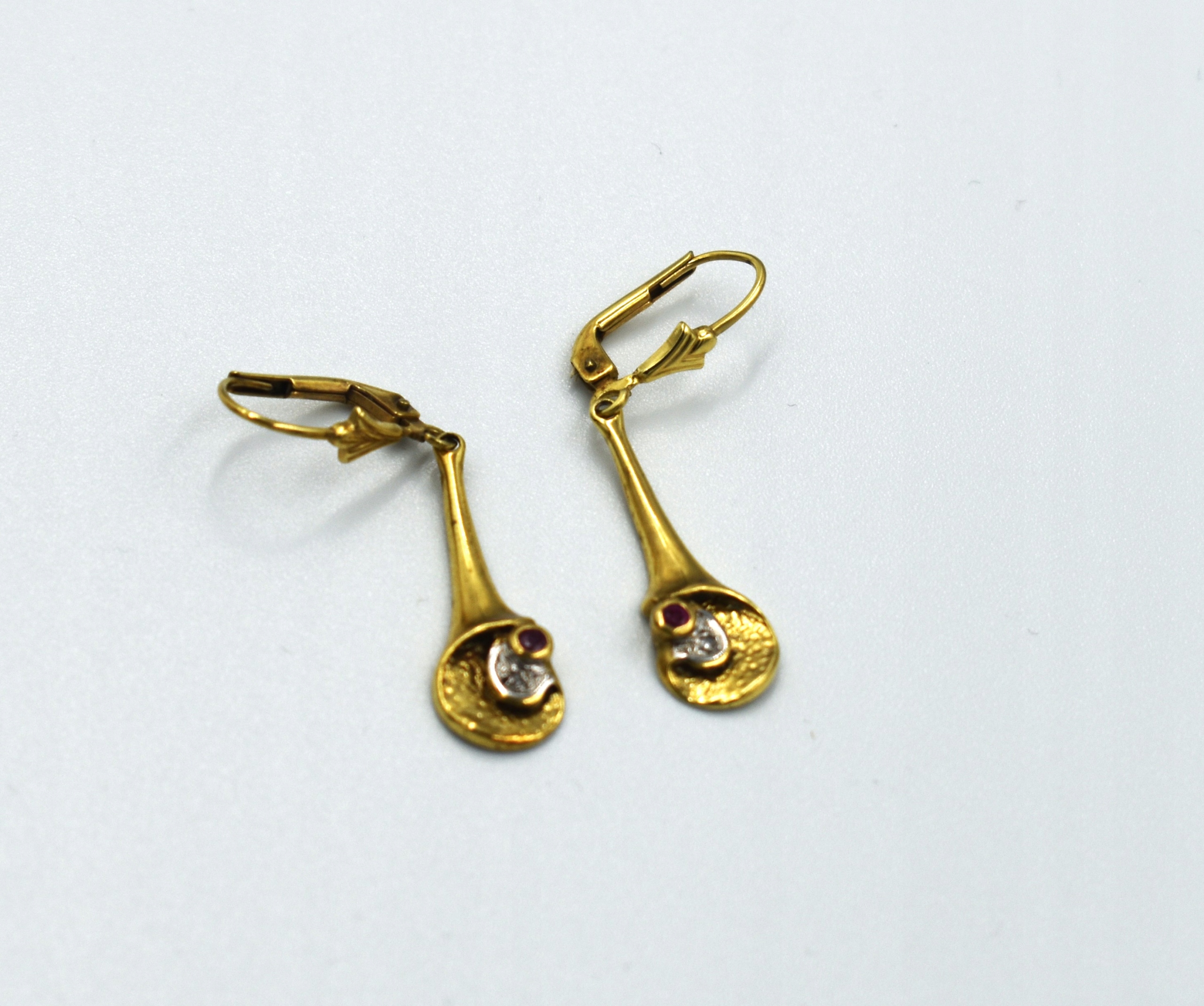 ЗОЛОТІ СЕРЕЖКИ З РУБІНАМИ І ДІАМАНТАМИ