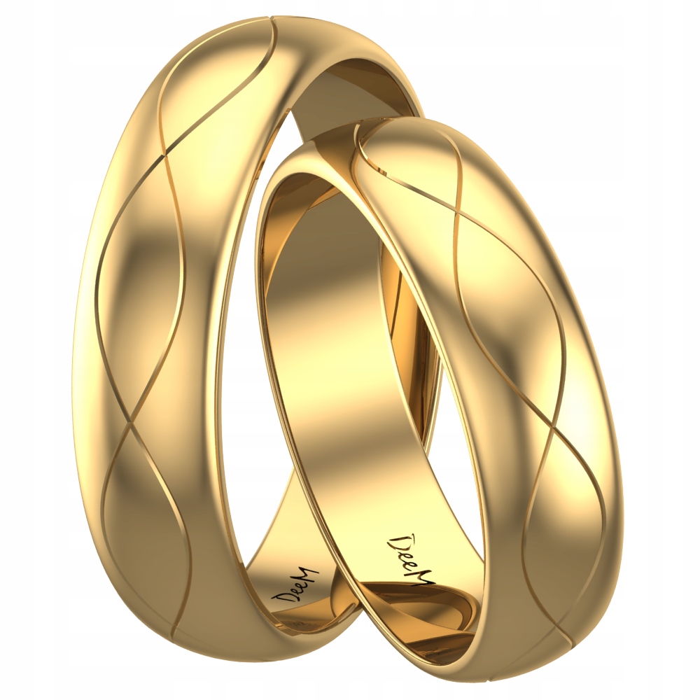 Елегантні кілець 14-каратного жовтого золота. Вони прикрашені двома переплетеними лініями. Візерунок, вирізаний діамантовим різаком, формує ніжну красу та чарівність цієї моделі. Завдяки напівкруглим профілю, кільця зберігають свого класичного, універсального персонажа. Це ідеальний вибір для людей, які цінують гармонію та легкість.