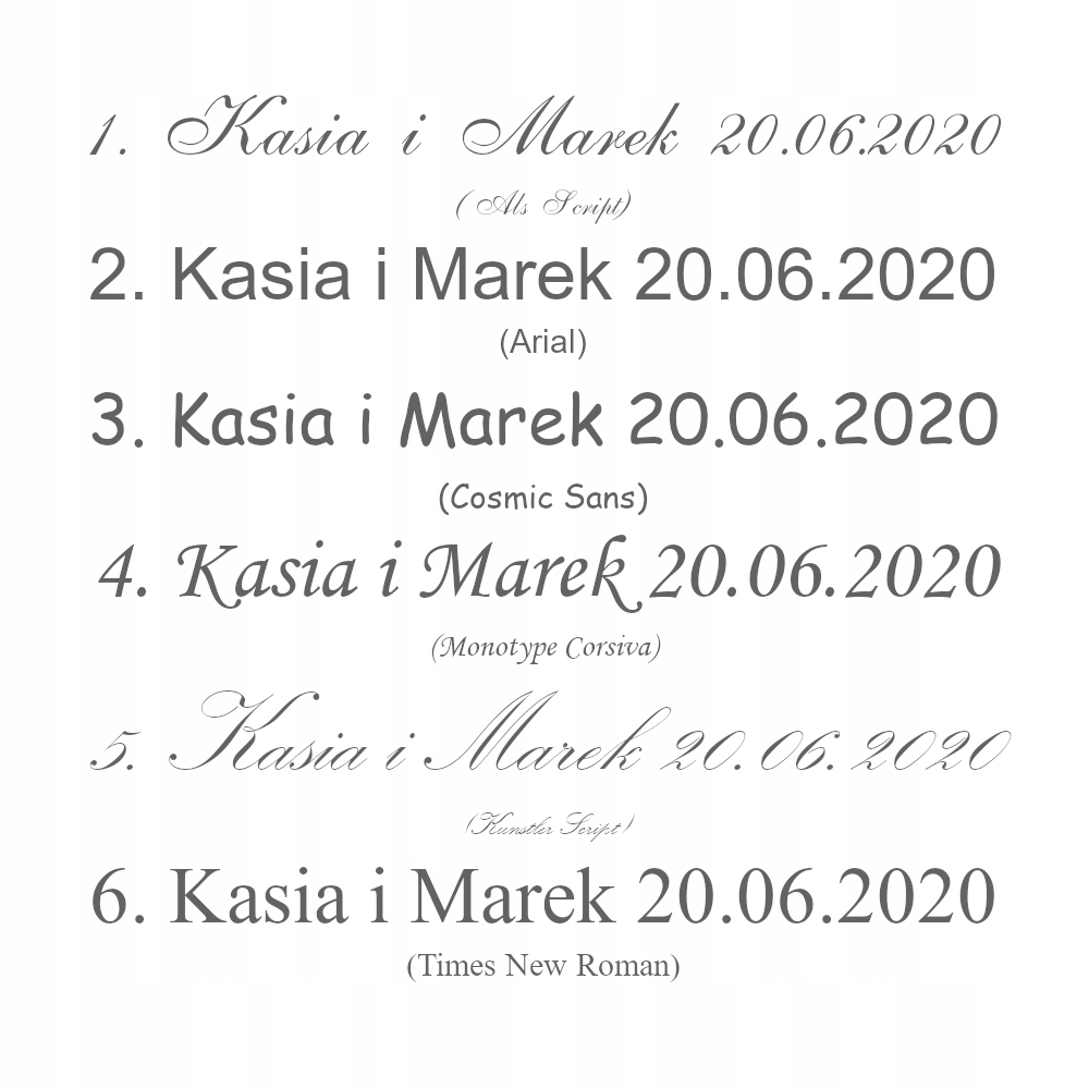 Під час розміщення замовлення вкажіть номер шрифту та вибрану графіку. Якщо такої інформації немає, наш фахівець з гравіювання підбере найбільш вигідний шрифт.