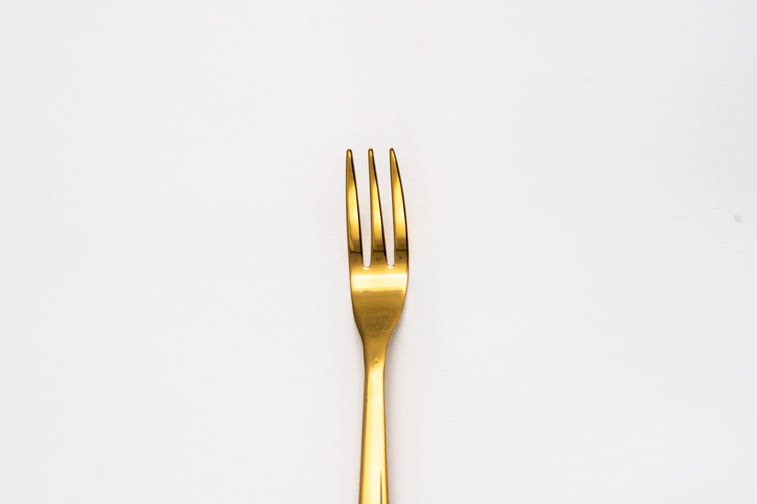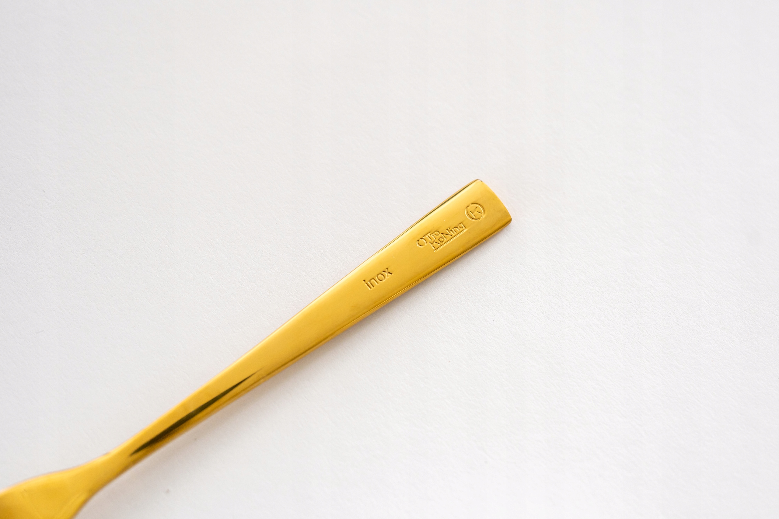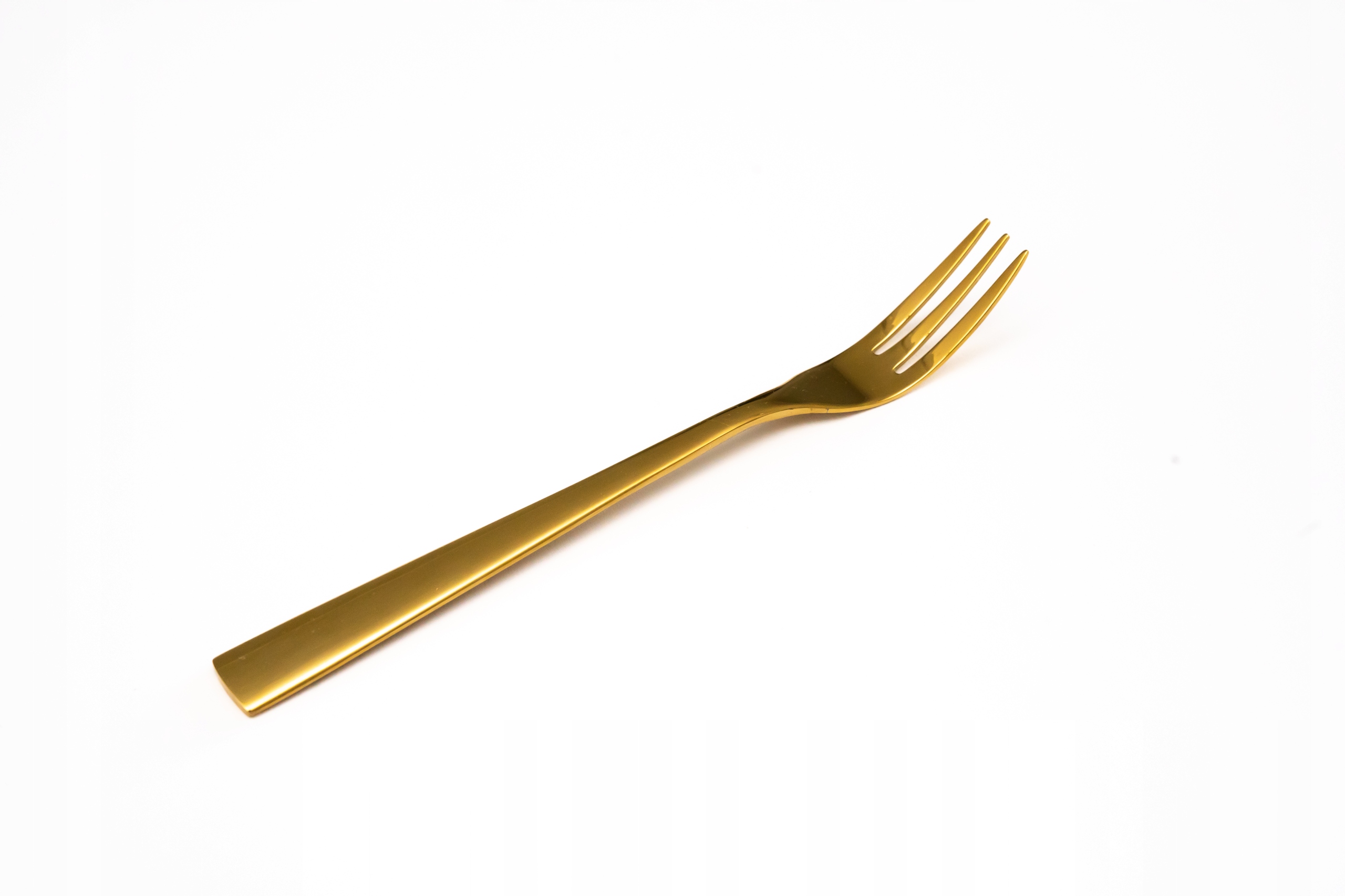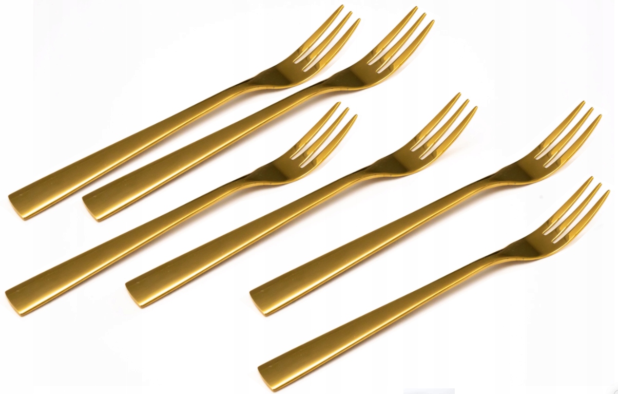 Вилки захоплюють своєю довгою, тонкою формою ручки, зручною у використанні, і золотою блискучою поверхнею.