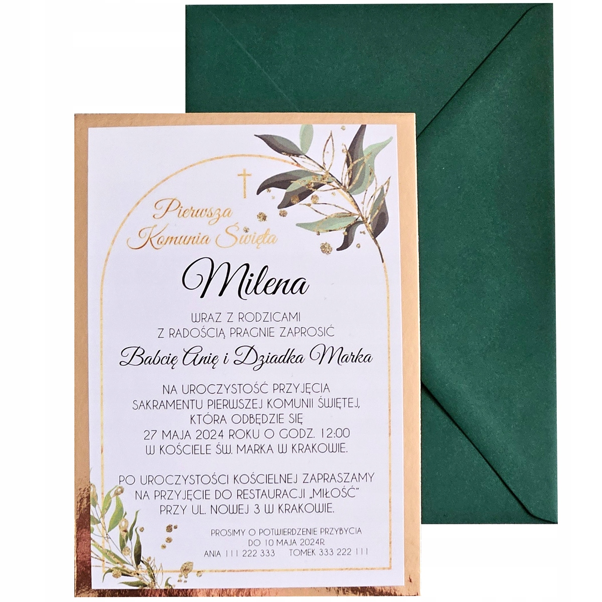 Елегантні золоті запрошення на церемонію Першого Святого Причастя.