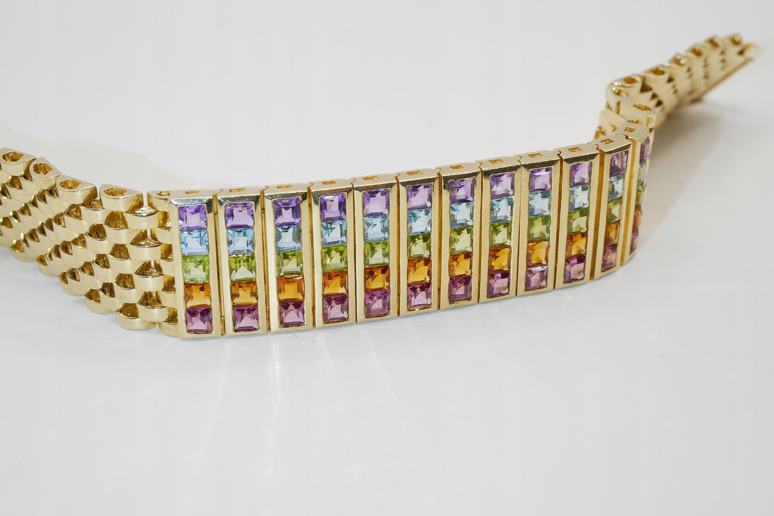 Золотий браслет 585 у стилі Rolex з барвистими дорогоцінними каменями!