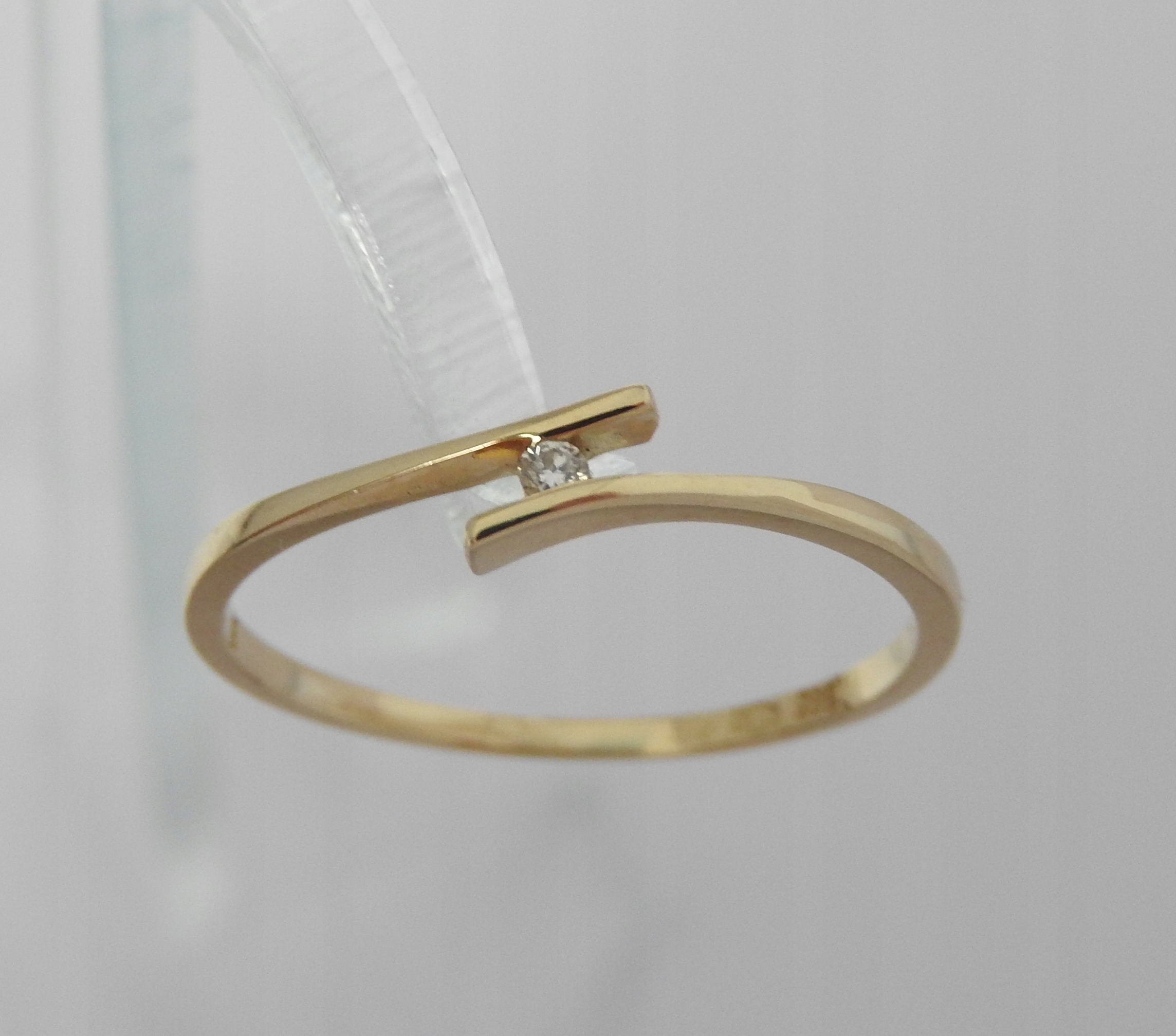 Кільце прикрашене діамантом I/SI1 вагою 0,02 карата з жовтого золота 585. Справжність діаманта підтверджено сертифікатом.