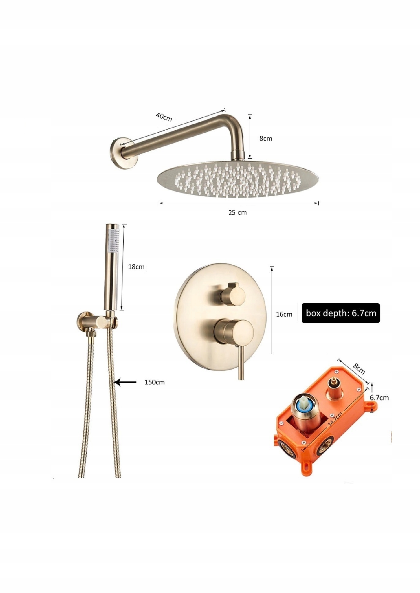 Золотий душовий набір - GOLD MATT 25