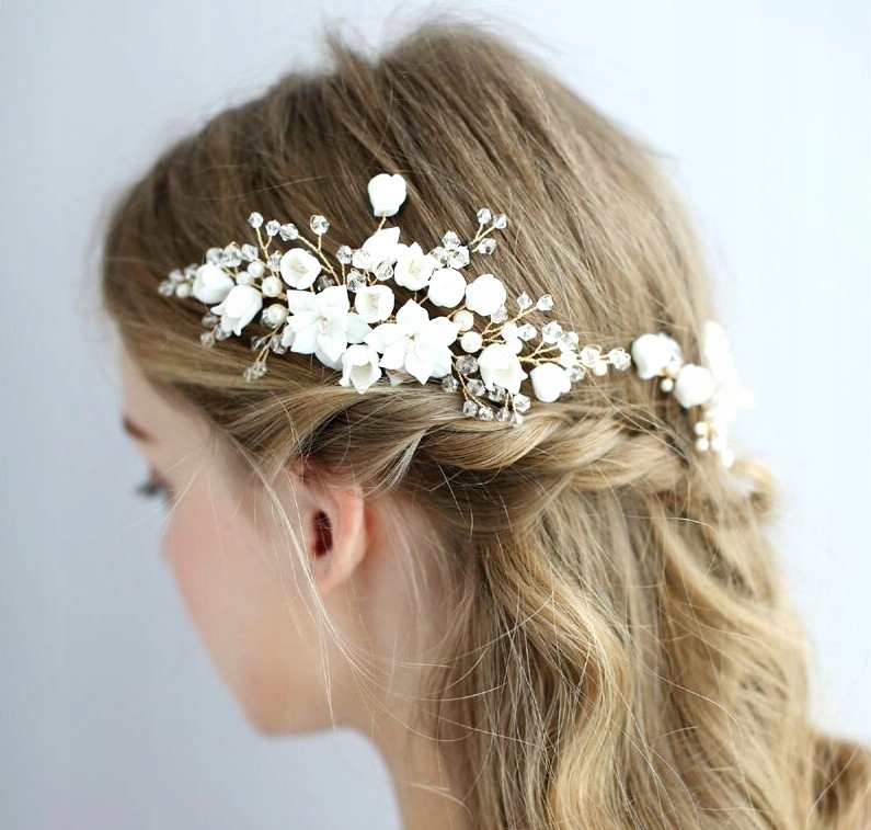 Весільний гребінець, вишукана прикраса для волосся, білі квіти