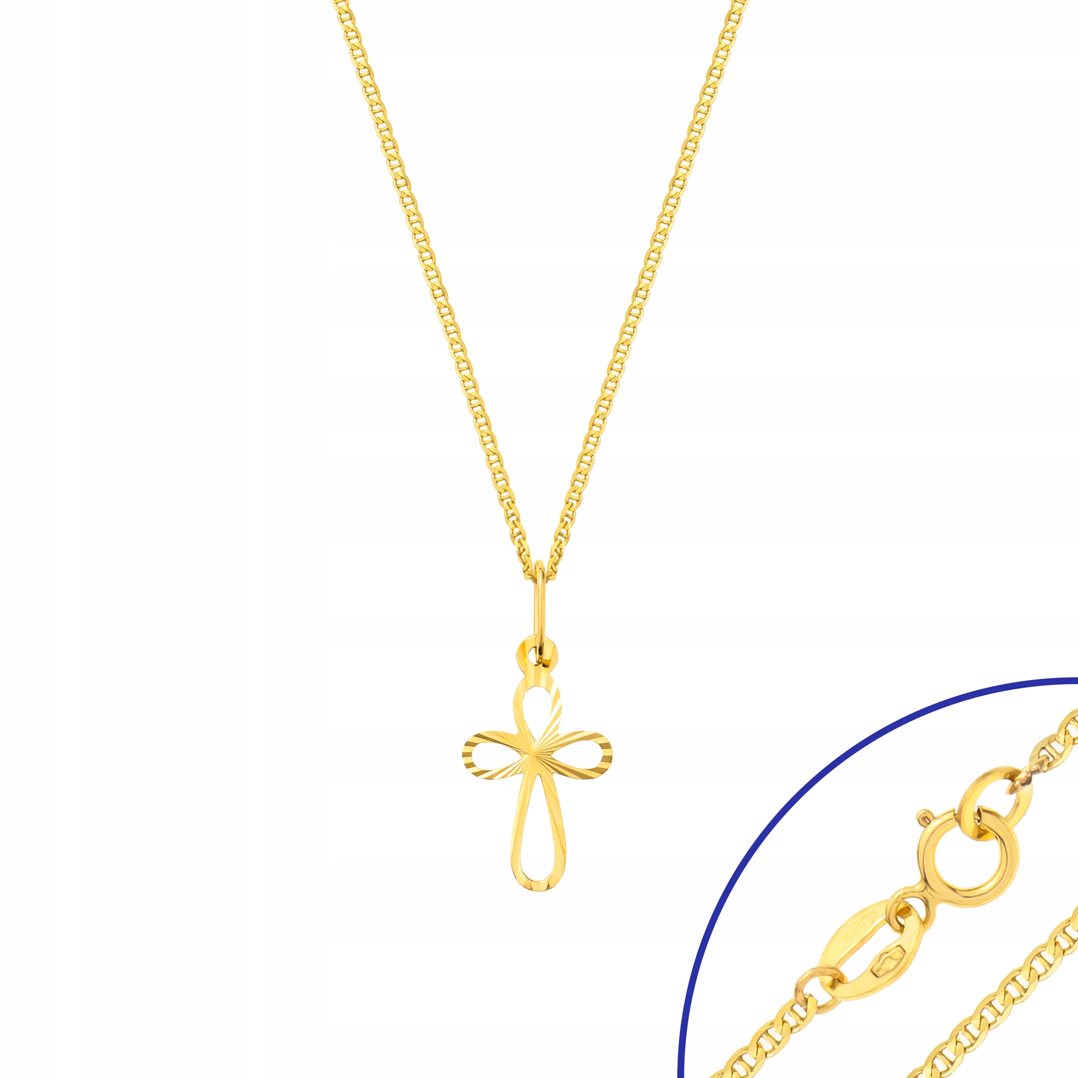 Ідеальна ідея подарунка людини, близької до серця. Золотий католицький хрест сподобається кожному одержувачу. делікатний візерунок - це чудова традиційна ідея подарунка з нагоди прийняття кожного з таїнств та іншого. Плюс делікатний ланцюг маринових. ювелірні вироби, упаковані в декоративну коробку, стане чудовим подарунком. Крім того, у нас є можливість зробити гравюру на лотку для випічки та помістити його в коробку. Використовуйте наші дизайни або створіть власний оригінальний текст гравірування - безкоштовний сервіс.